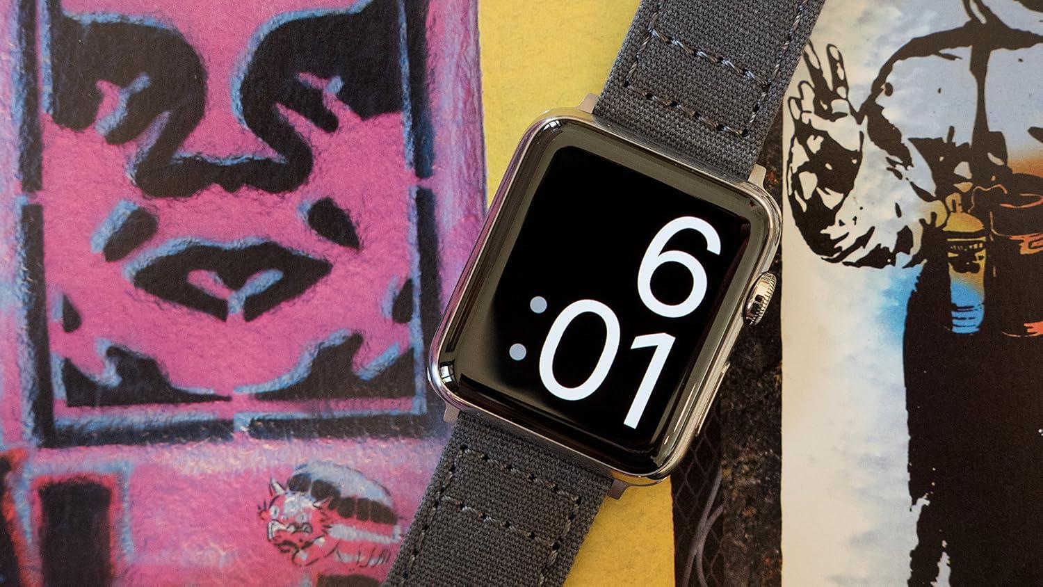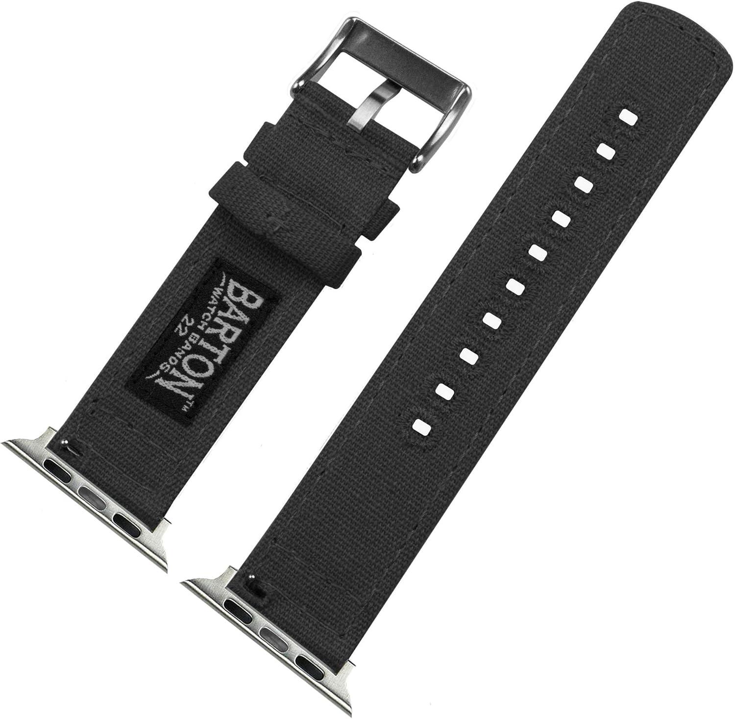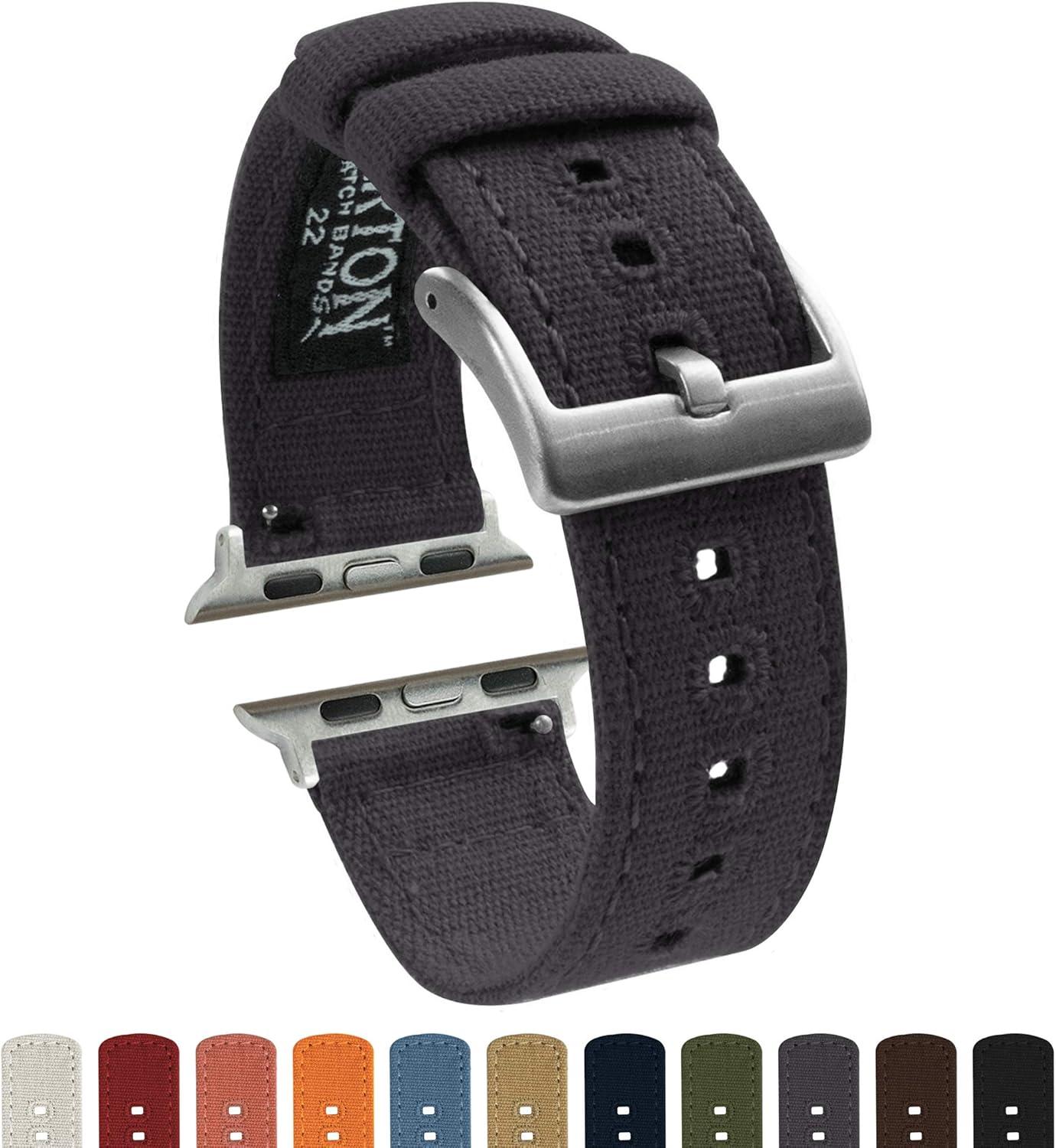 BARTON Canvas Apple Watch Bands are a perfect fit for any Apple Watch, Series 2, Series 3, Series 4, Series 5, Series 6, Series 7, Series 8, SE or Ultra. Choose small (38mm/40mm/41mm case size) or large (42mm/44mm/45mm/49mm case size). Featuring premium embroidery for style and strength, these 22mm straps are fabricated from cotton canvas and the hardware includes 316L surgical grade stainless steel. These Apple Watch Bands are sturdy, breathable and machine washable.