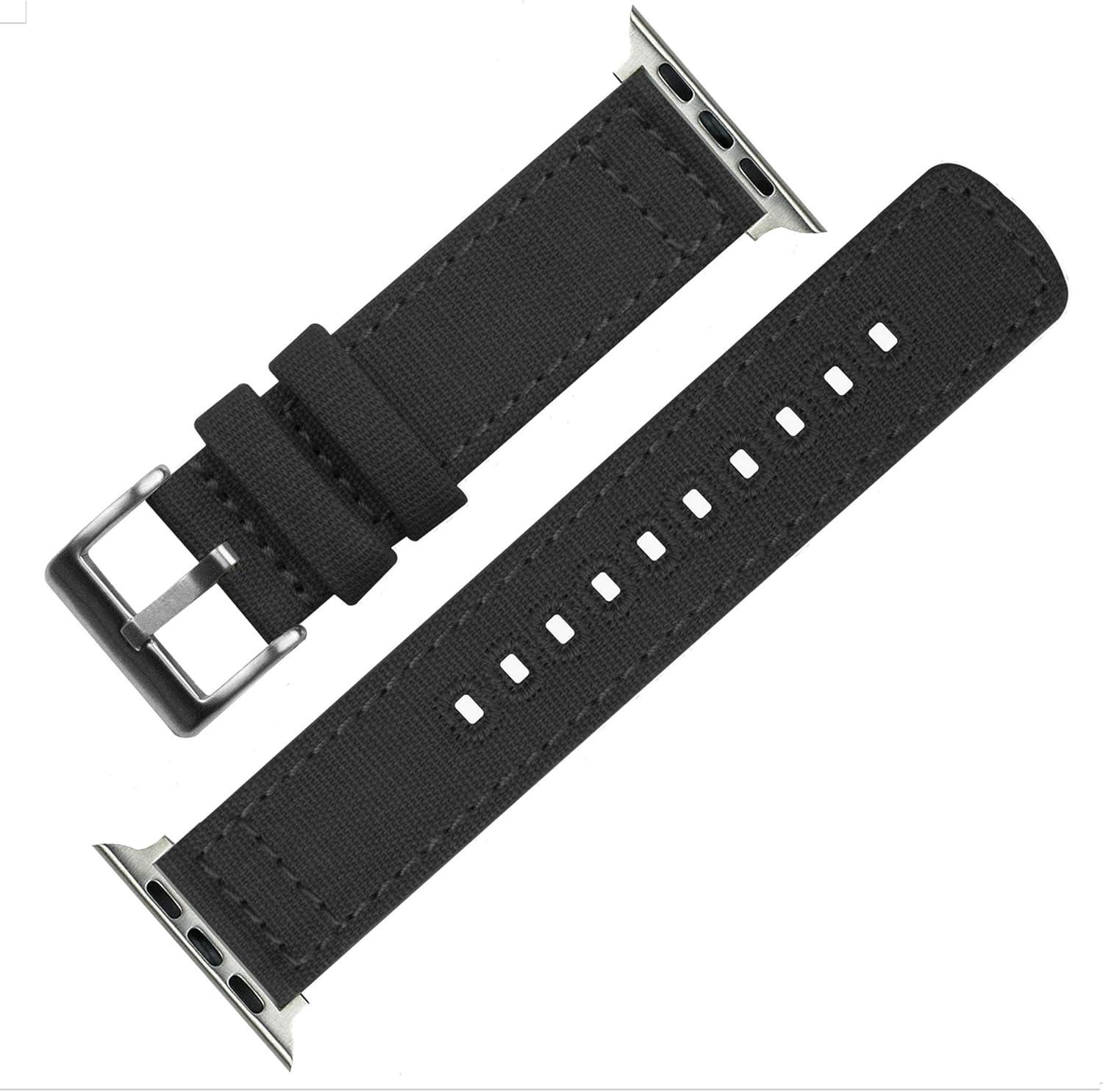 BARTON WATCH BANDS – Canvas Watch Bands Compatible with Apple Watch Models – 1, 2, 3, 4, 5, 6, 7, 8, 9, 10, SE, Ultra & Ultra 2(Smoke Grey (Black PVD Hardware))