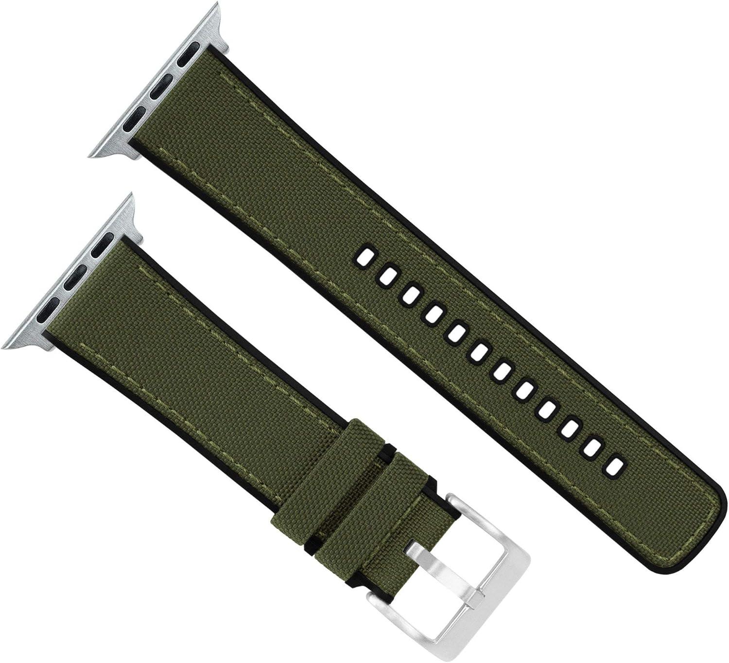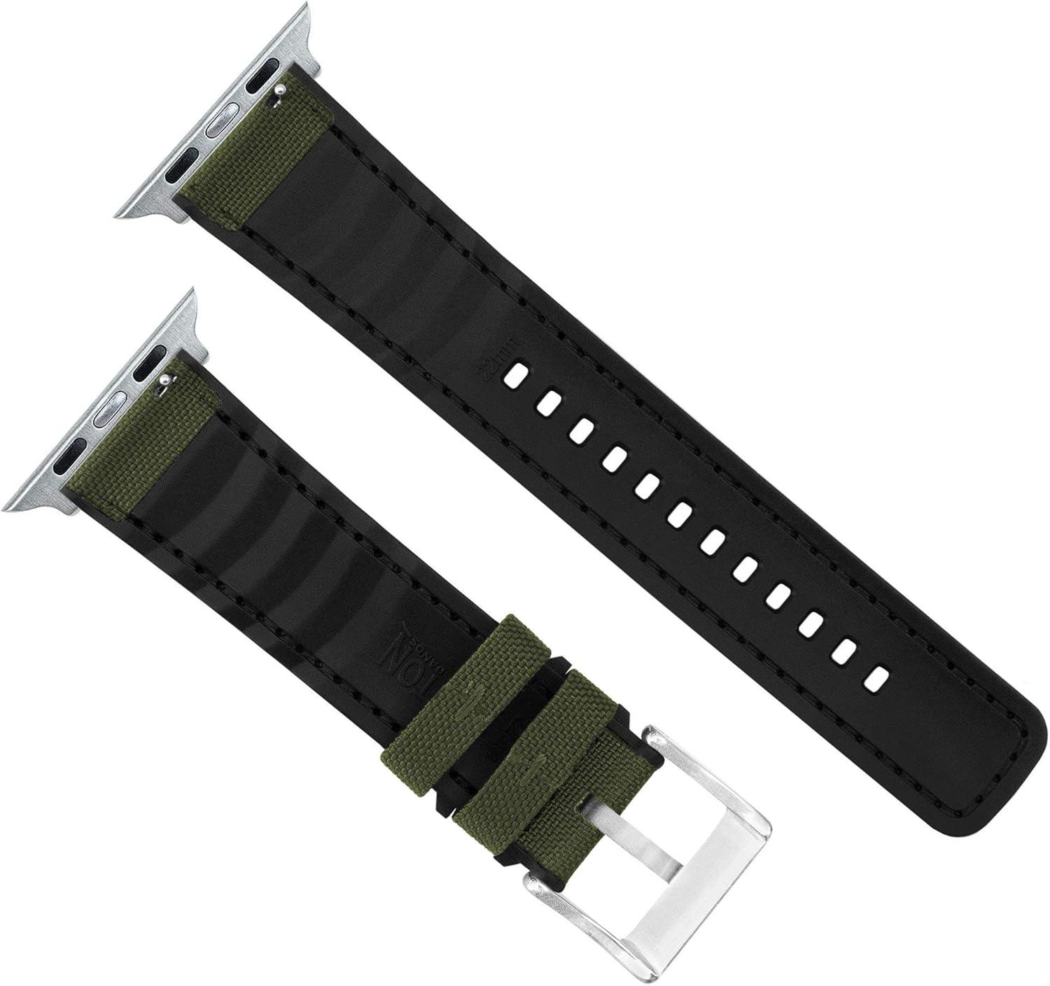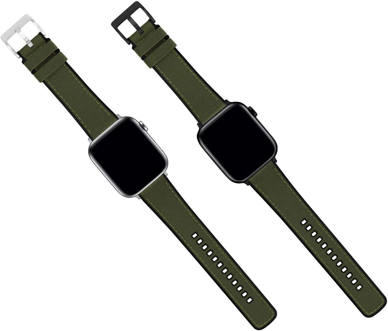 BARTON WATCH BANDS – Cordura Fabric & Silicone Hybrid Watch Bands Compatible with Apple Watch Models – 1, 2, 3, 4, 5, 6, 7, 8, 9, 10, SE, Ultra & Ultra 2(Army Green)
