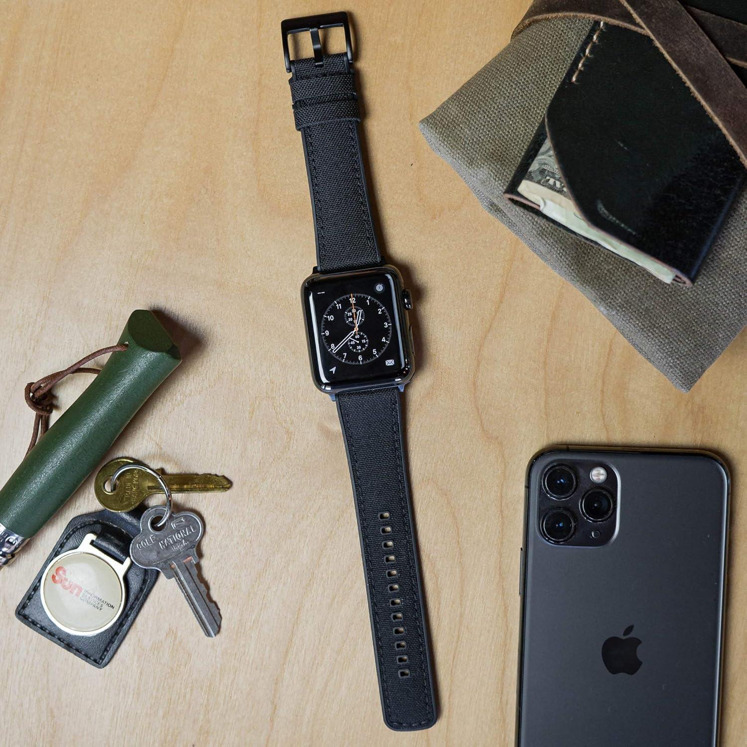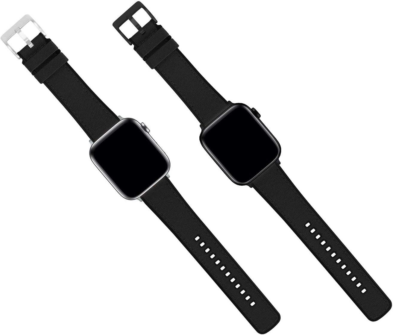 BARTON WATCH BANDS – Cordura Fabric & Silicone Hybrid Watch Bands Compatible with Apple Watch Models – 1, 2, 3, 4, 5, 6, 7, 8, 9, 10, SE, Ultra & Ultra 2(Black (Black Buckle))