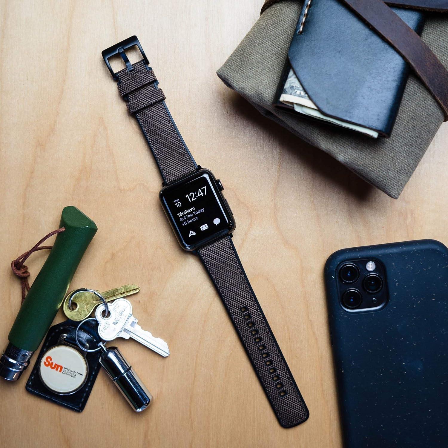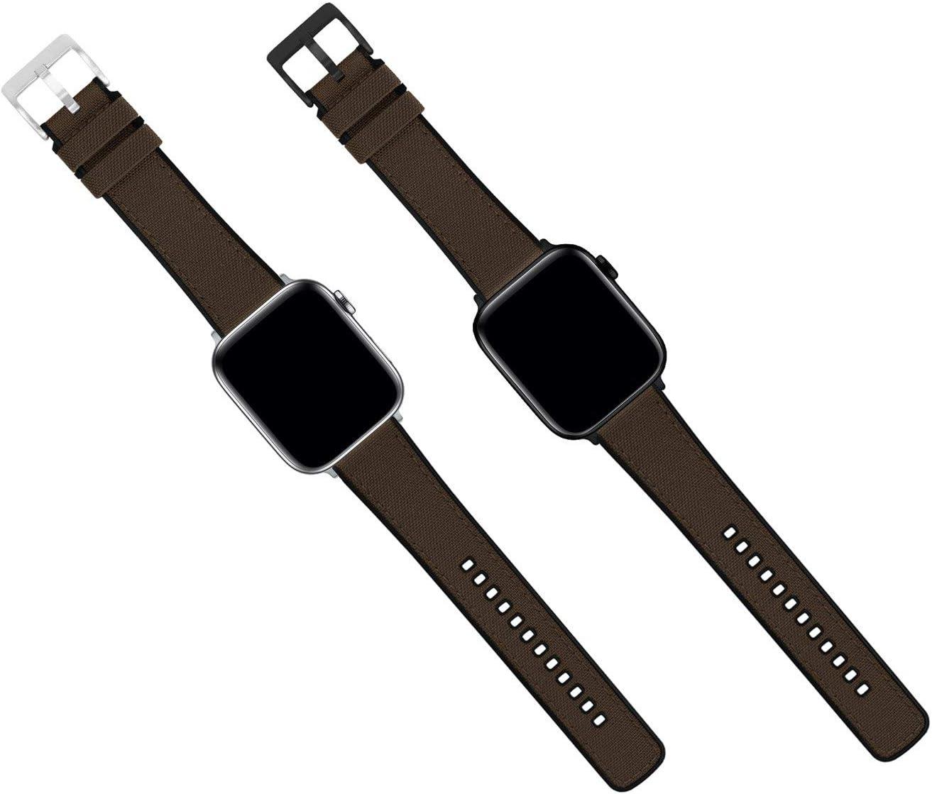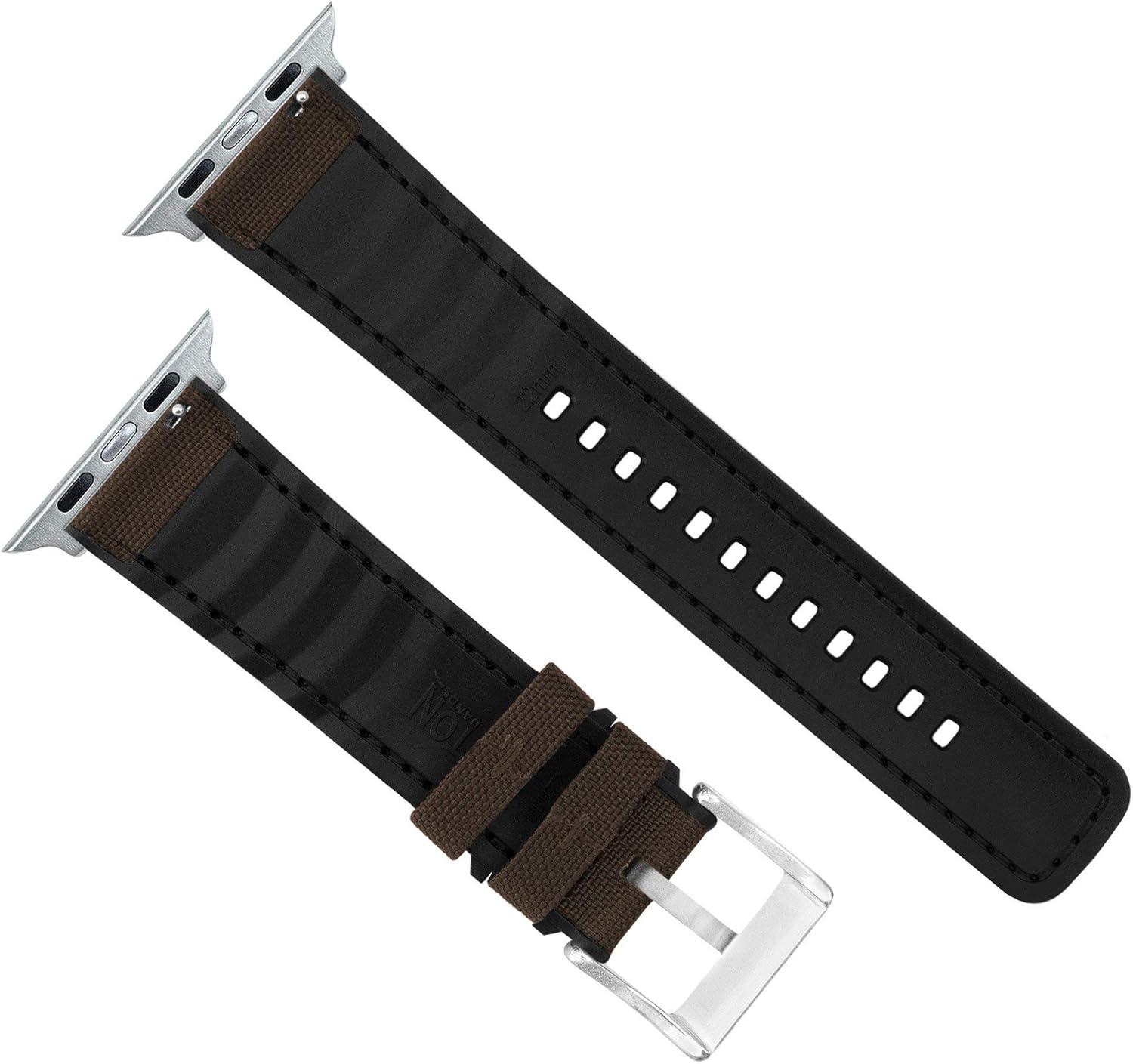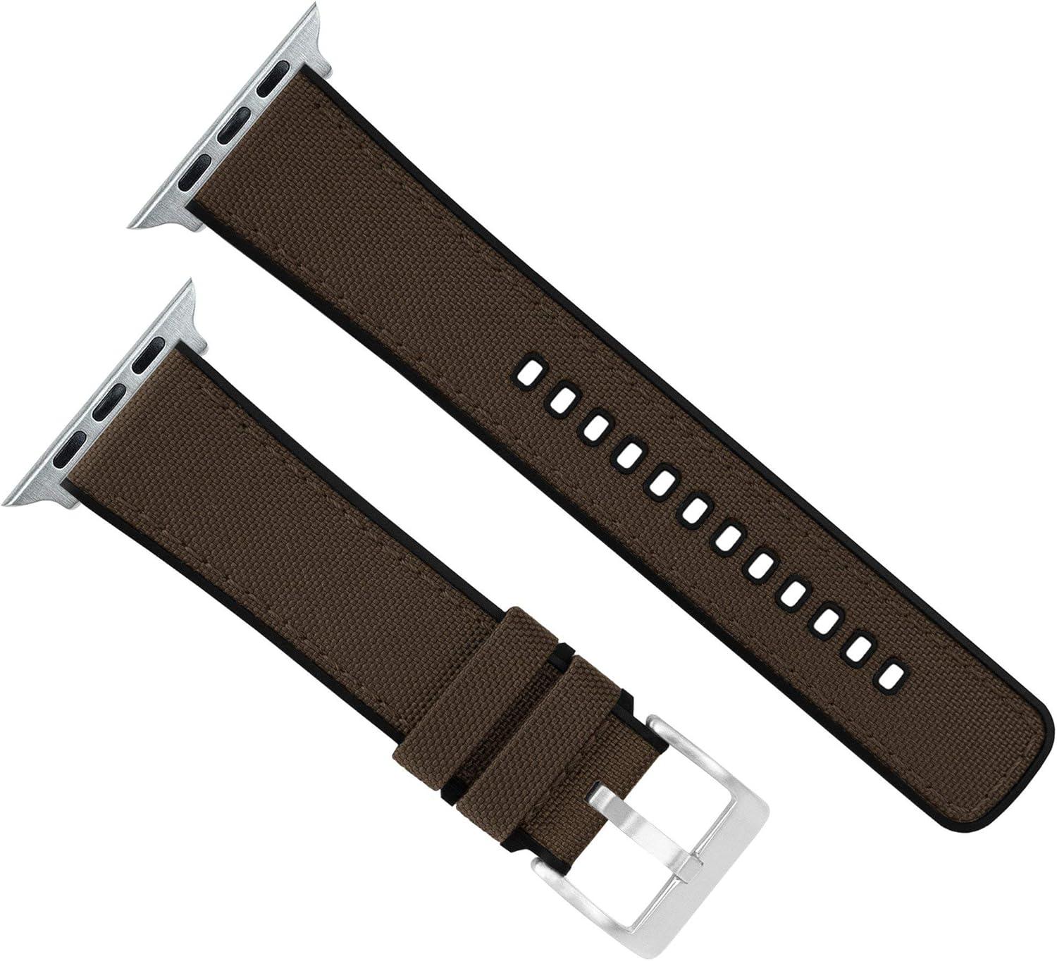 BARTON WATCH BANDS – Cordura Fabric & Silicone Hybrid Watch Bands Compatible with Apple Watch Models – 1, 2, 3, 4, 5, 6, 7, 8, 9, 10, SE, Ultra & Ultra 2(Chocolate Brown)