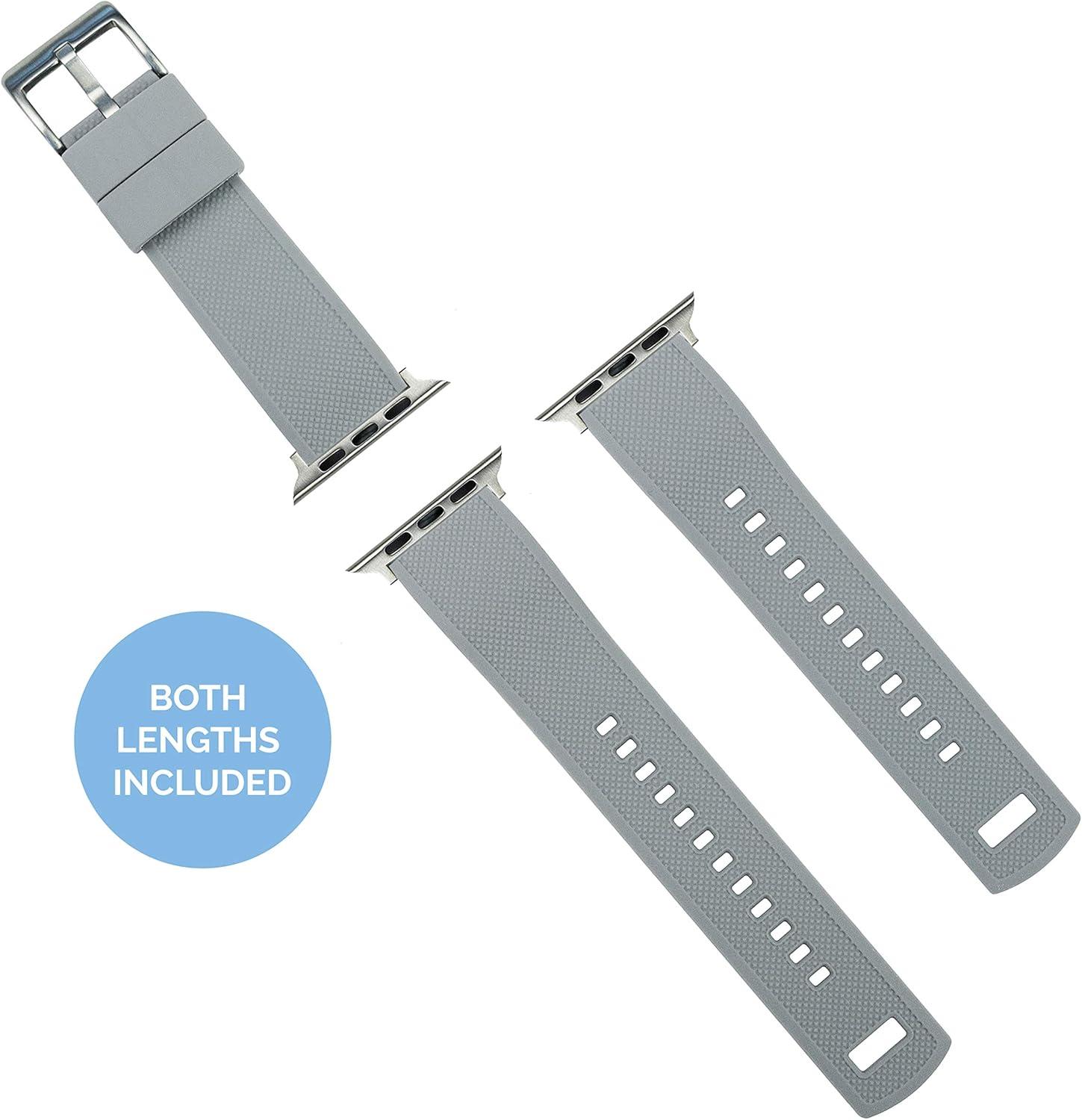 BARTON WATCH BANDS – Elite Silicone Watch Bands Compatible with Apple Watch Models – 1, 2, 3, 4, 5, 6, 7, 8, 9, 10, SE, Ultra & Ultra 2(Cool Grey Top / Black Bottom (Black PVD Hardware))