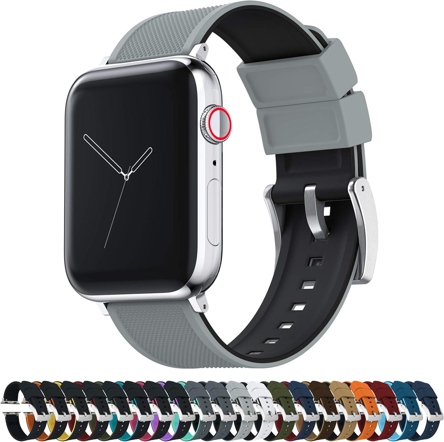 BARTON WATCH BANDS - Elite Silicone Watch Bands Compatible with Apple Watch Models - 1, 2, 3, 4, 5, 6, 7, 8, 9, 10, SE, Ultra & Ultra 2(Cool Grey Top / Black Bottom)