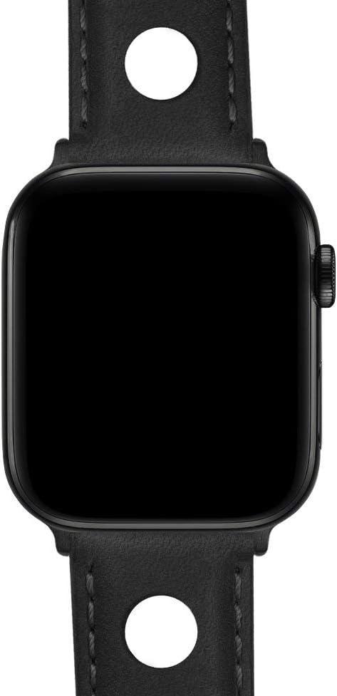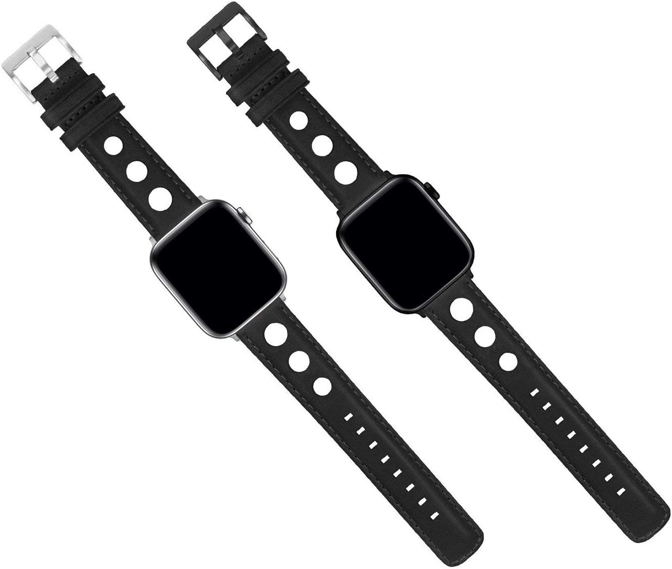 BARTON WATCH BANDS – Horween Leather Watch Bands Compatible with Apple Watch Models – 1, 2, 3, 4, 5, 6, 7, 8, 9, 10, SE, Ultra & Ultra 2(Black (Rally Style))