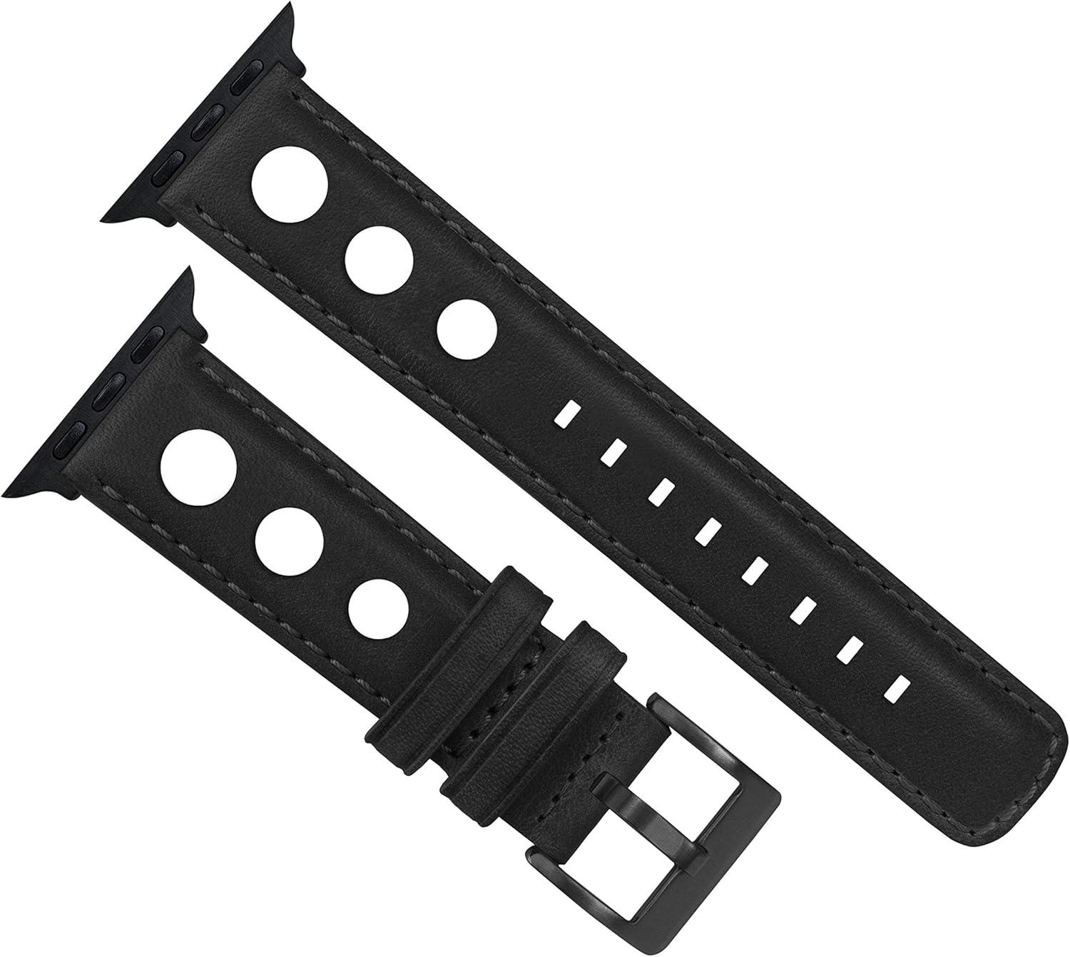 BARTON WATCH BANDS – Horween Leather Watch Bands Compatible with Apple Watch Models – 1, 2, 3, 4, 5, 6, 7, 8, 9, 10, SE, Ultra & Ultra 2(Black (Rally Style) – Black PVD Hardware)