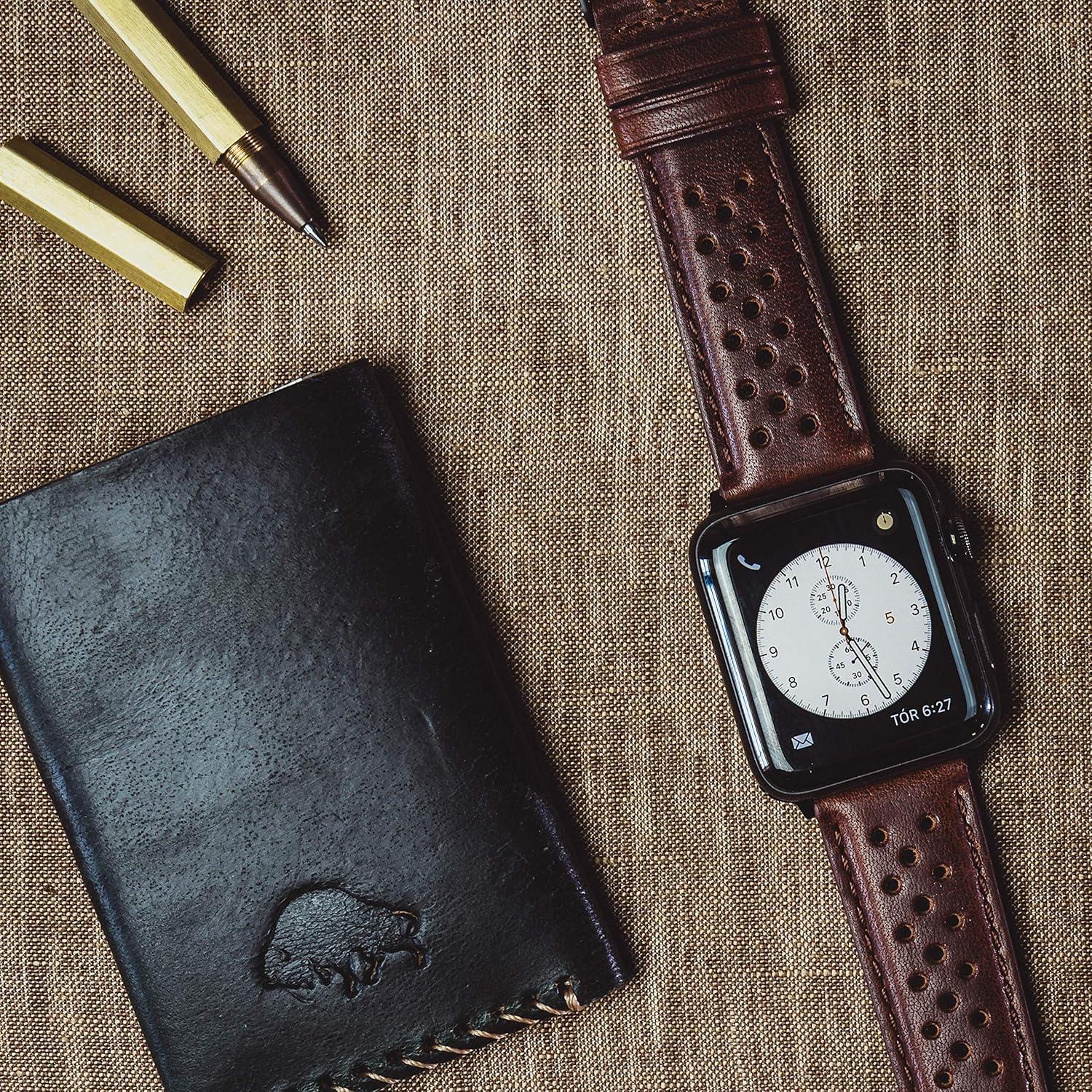 imageBARTON WATCH BANDS  Horween Leather Watch Bands Compatible with Apple Watch Models  1 2 3 4 5 6 7 8 9 10 SE Ultra ampamp Ultra 2Chocolate Brown Racing Style