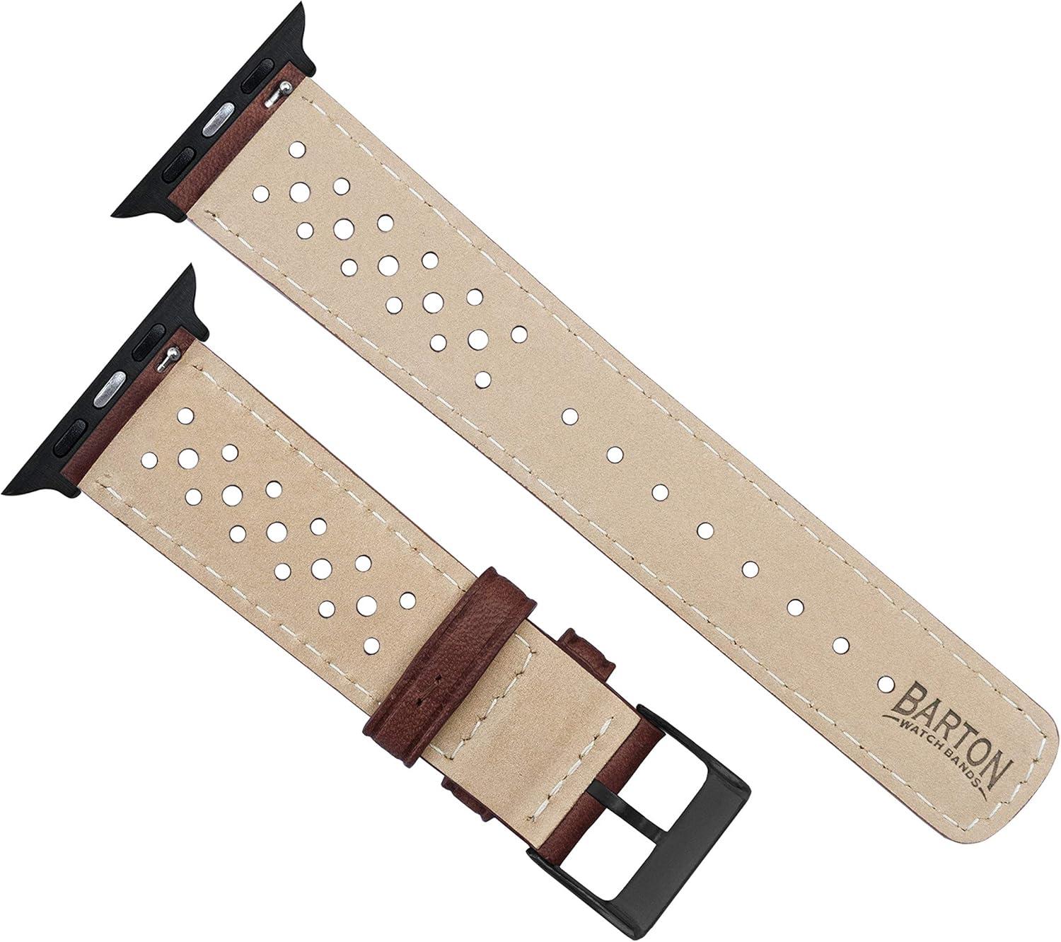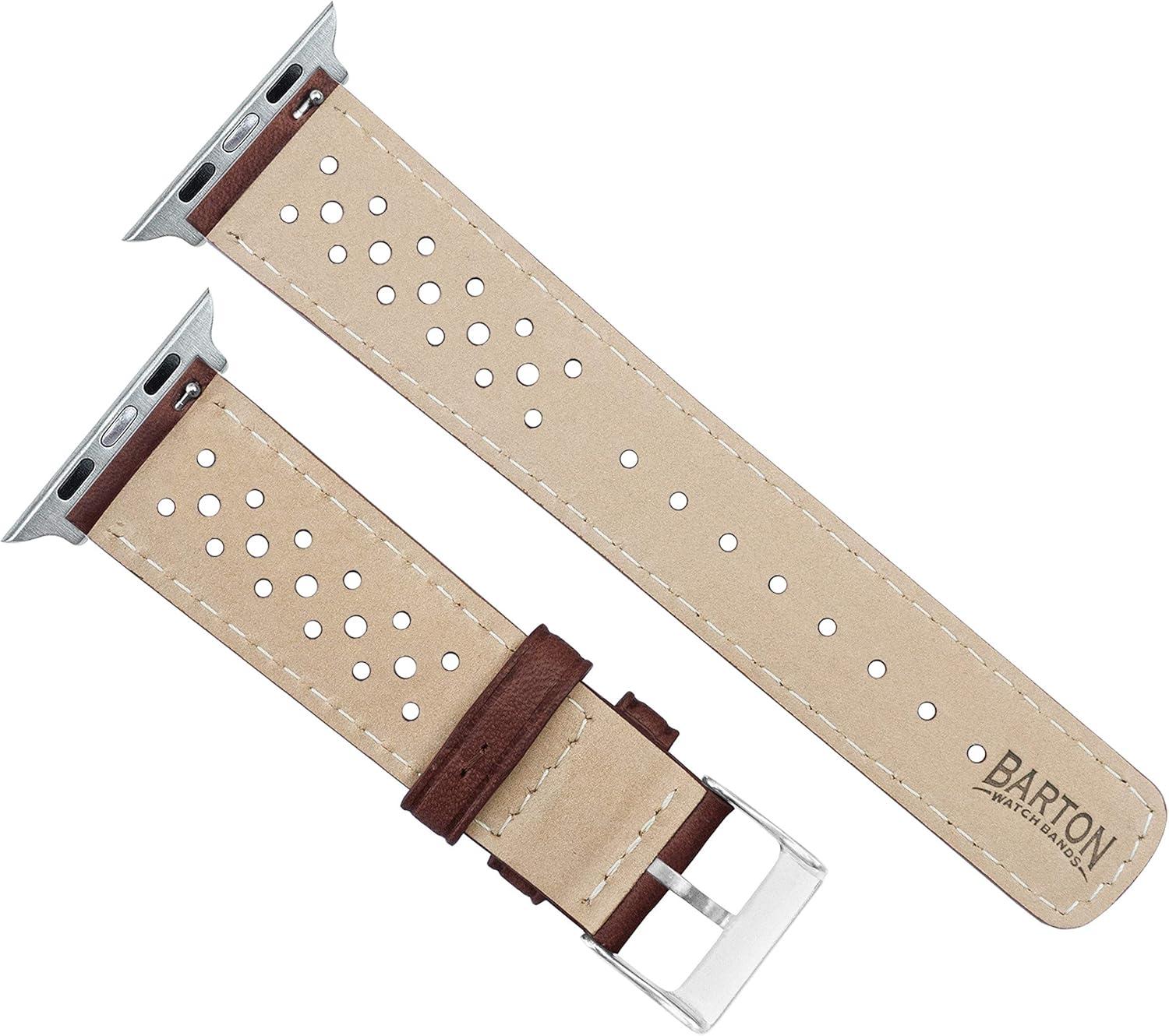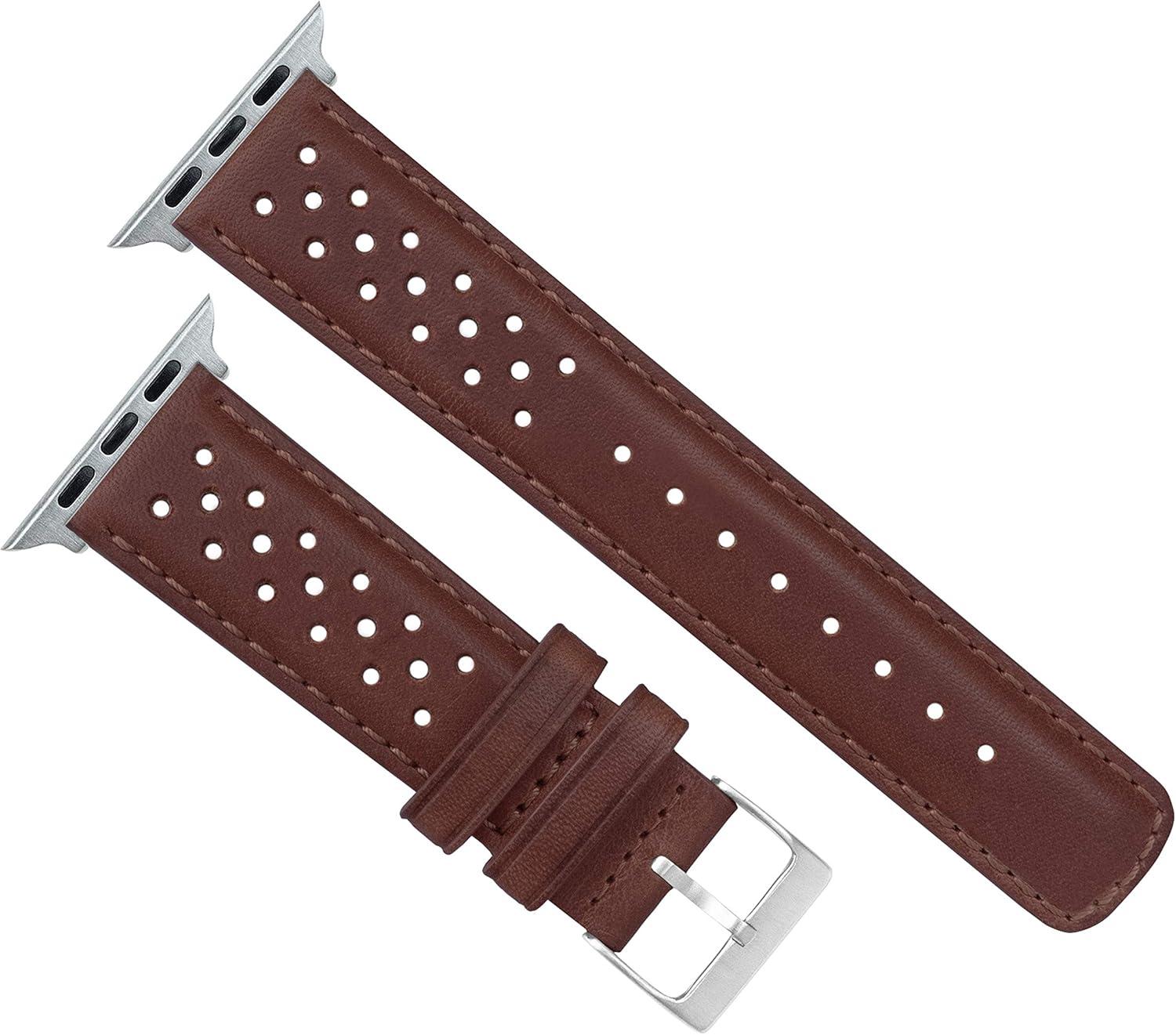 BARTON WATCH BANDS – Horween Leather Watch Bands Compatible with Apple Watch Models – 1, 2, 3, 4, 5, 6, 7, 8, 9, 10, SE, Ultra & Ultra 2(Chocolate Brown (Racing Style))