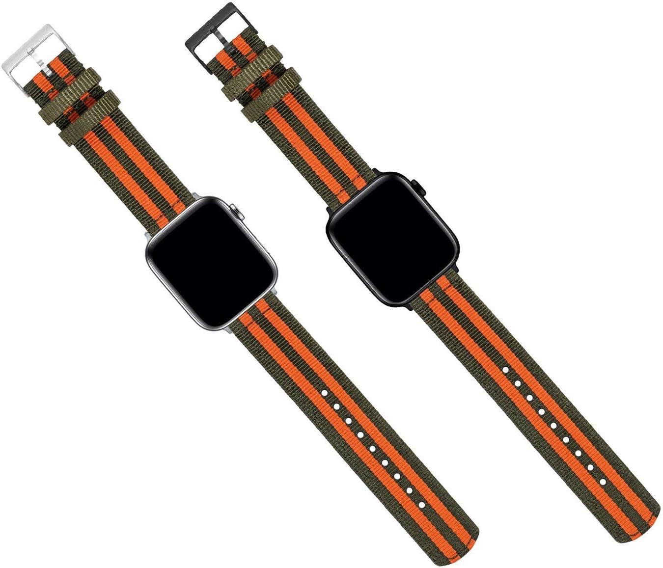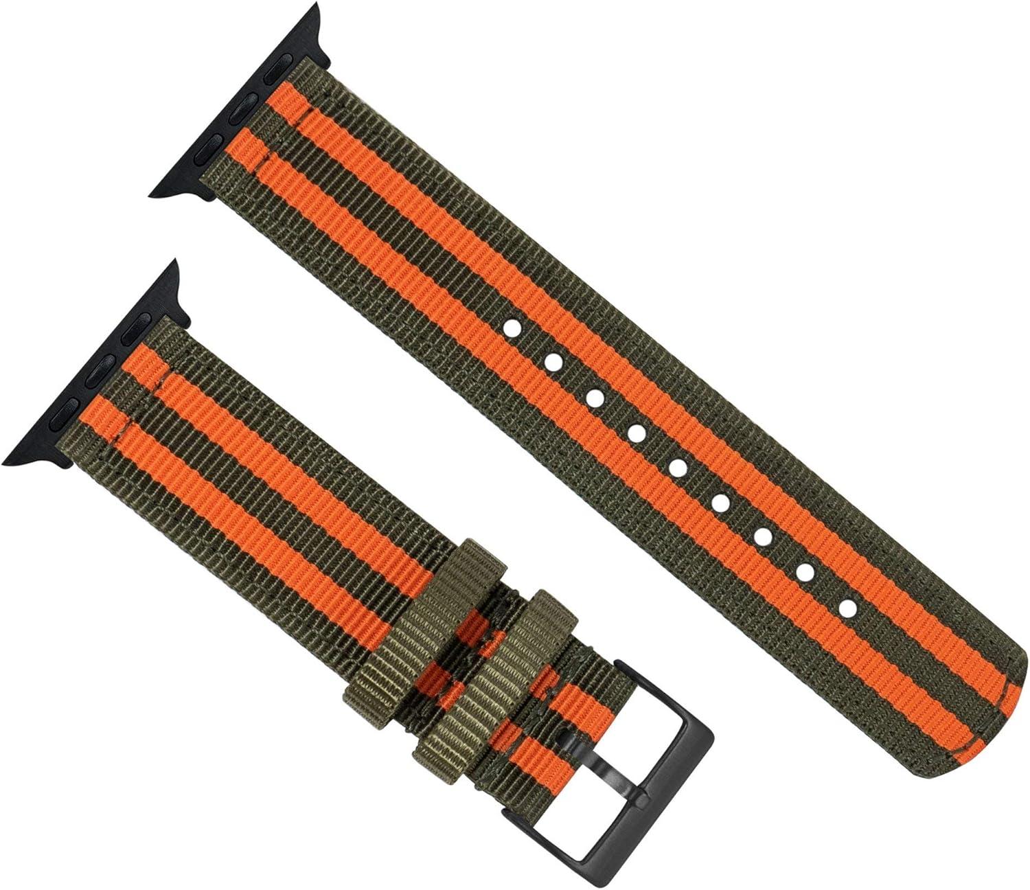 BARTON WATCH BANDS – Military Style Nylon Watch Bands Compatible with Apple Watch Models – 1, 2, 3, 4, 5, 6, 7, 8, 9, 10, SE, Ultra & Ultra 2(Army Green & Orange (Black Hardware))