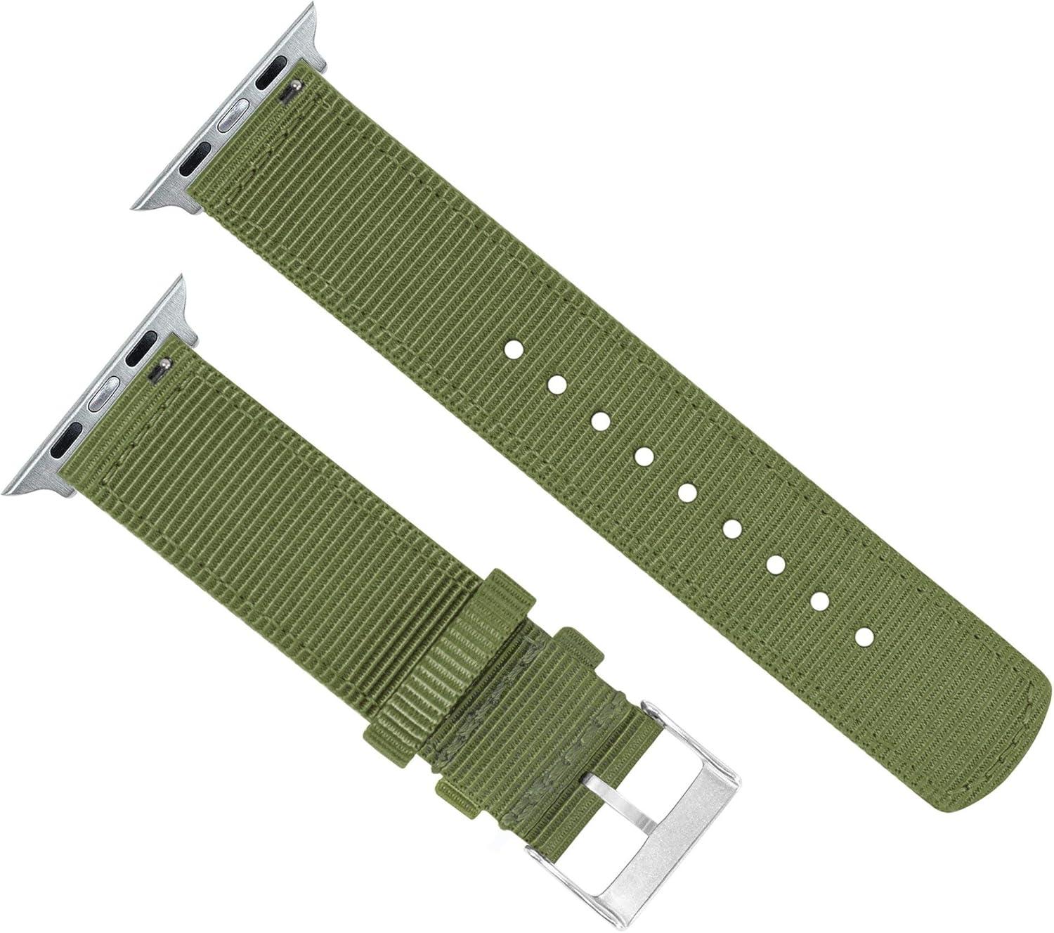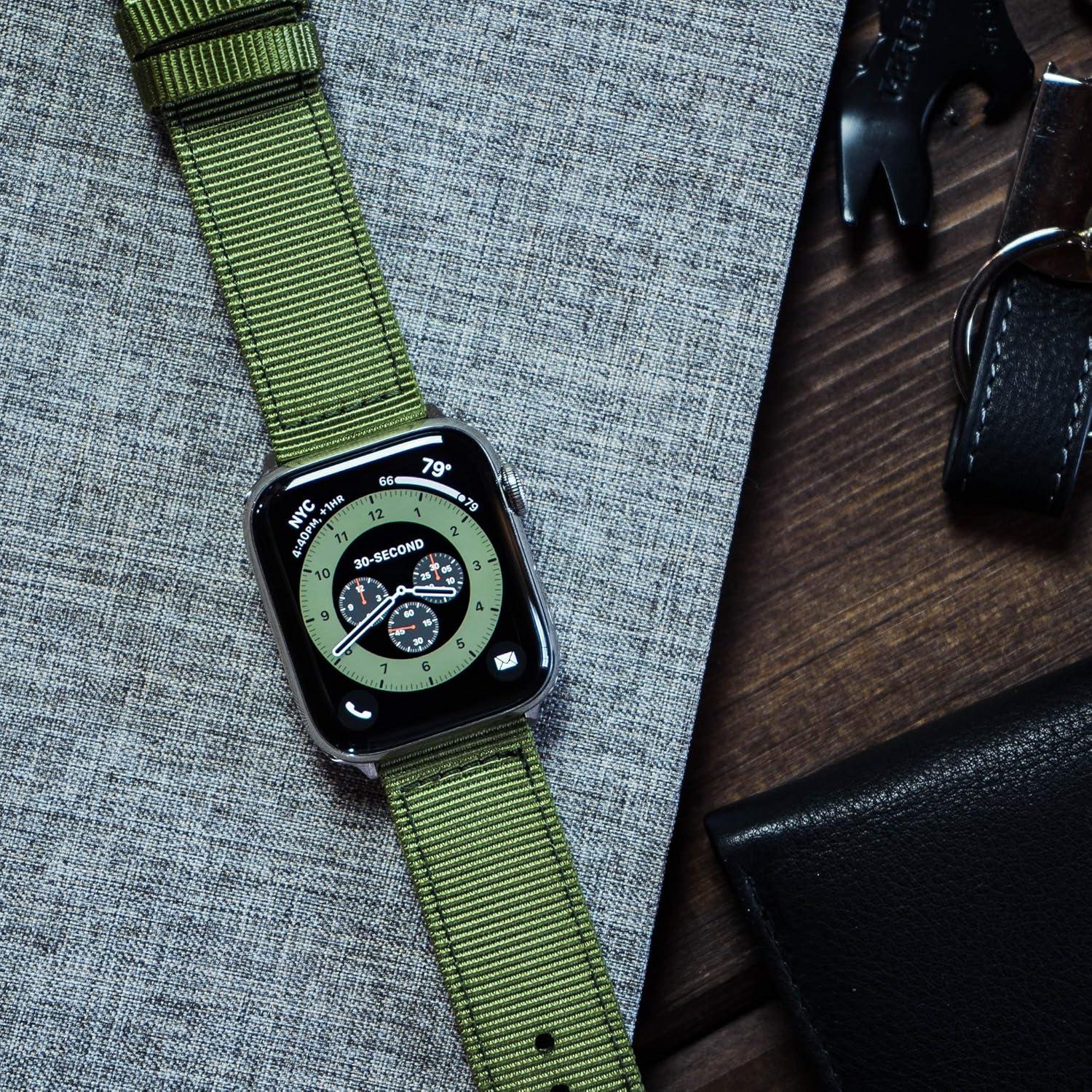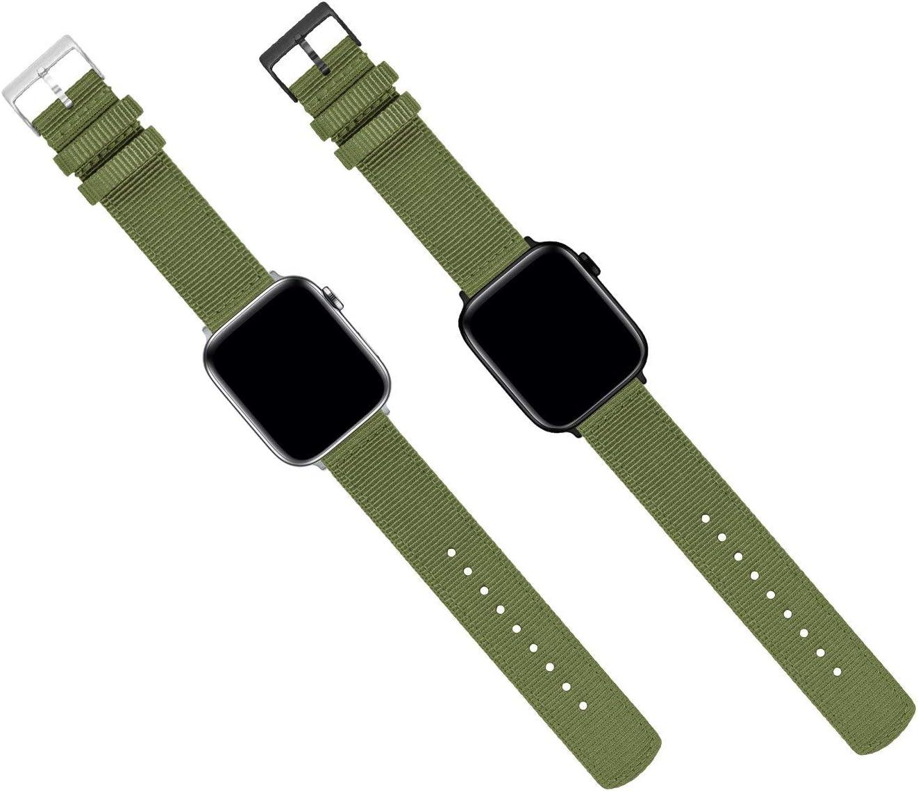 BARTON WATCH BANDS – Military Style Nylon Watch Bands Compatible with Apple Watch Models – 1, 2, 3, 4, 5, 6, 7, 8, 9, 10, SE, Ultra & Ultra 2(Army Green (Stainless Hardware))