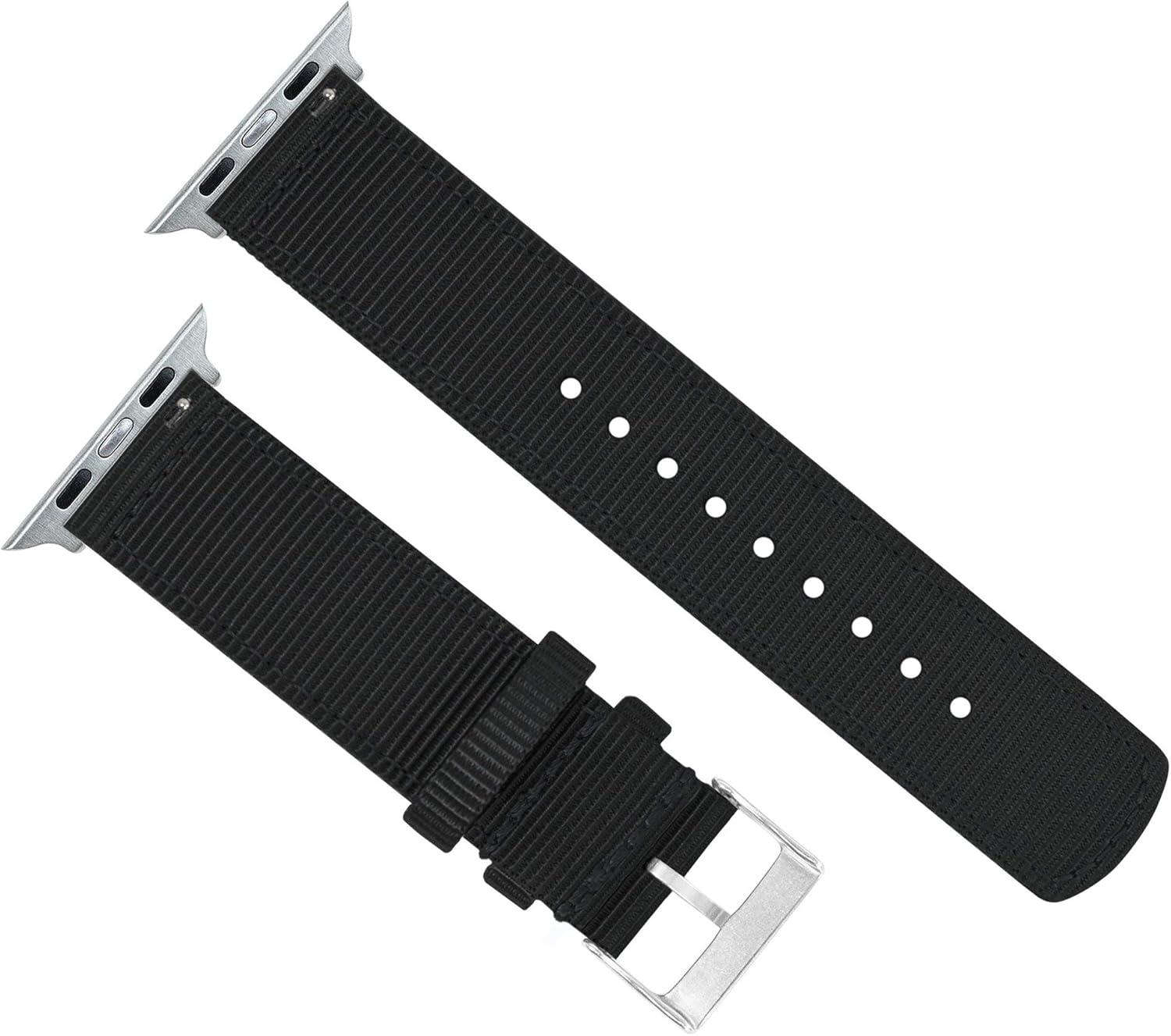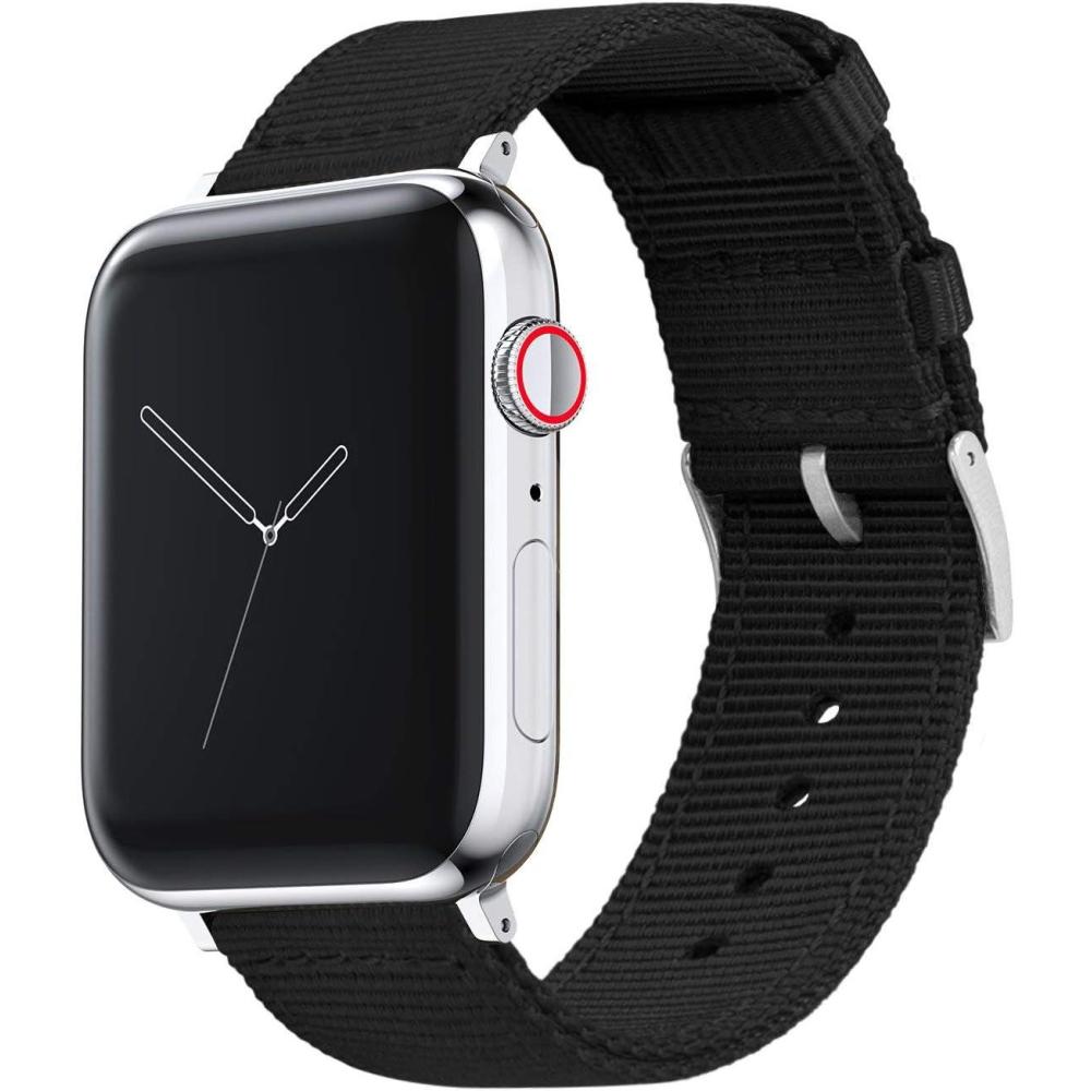 BARTON WATCH BANDS – Military Style Nylon Watch Bands Compatible with Apple Watch Models – 1, 2, 3, 4, 5, 6, 7, 8, 9, 10, SE, Ultra & Ultra 2(Black (Stainless Hardware))
