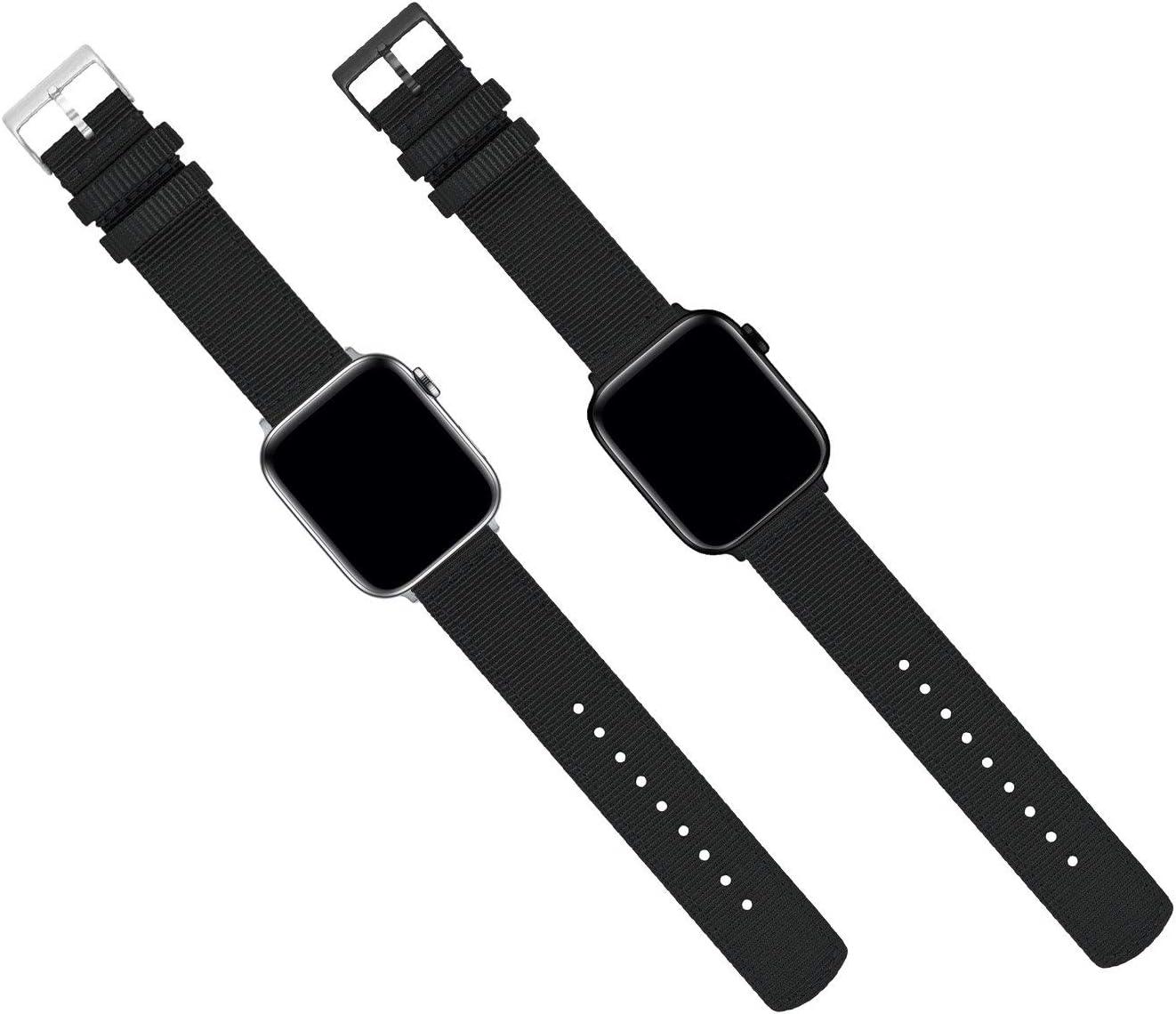 BARTON WATCH BANDS – Military Style Nylon Watch Bands Compatible with Apple Watch Models – 1, 2, 3, 4, 5, 6, 7, 8, 9, 10, SE, Ultra & Ultra 2(Black (Black Hardware))