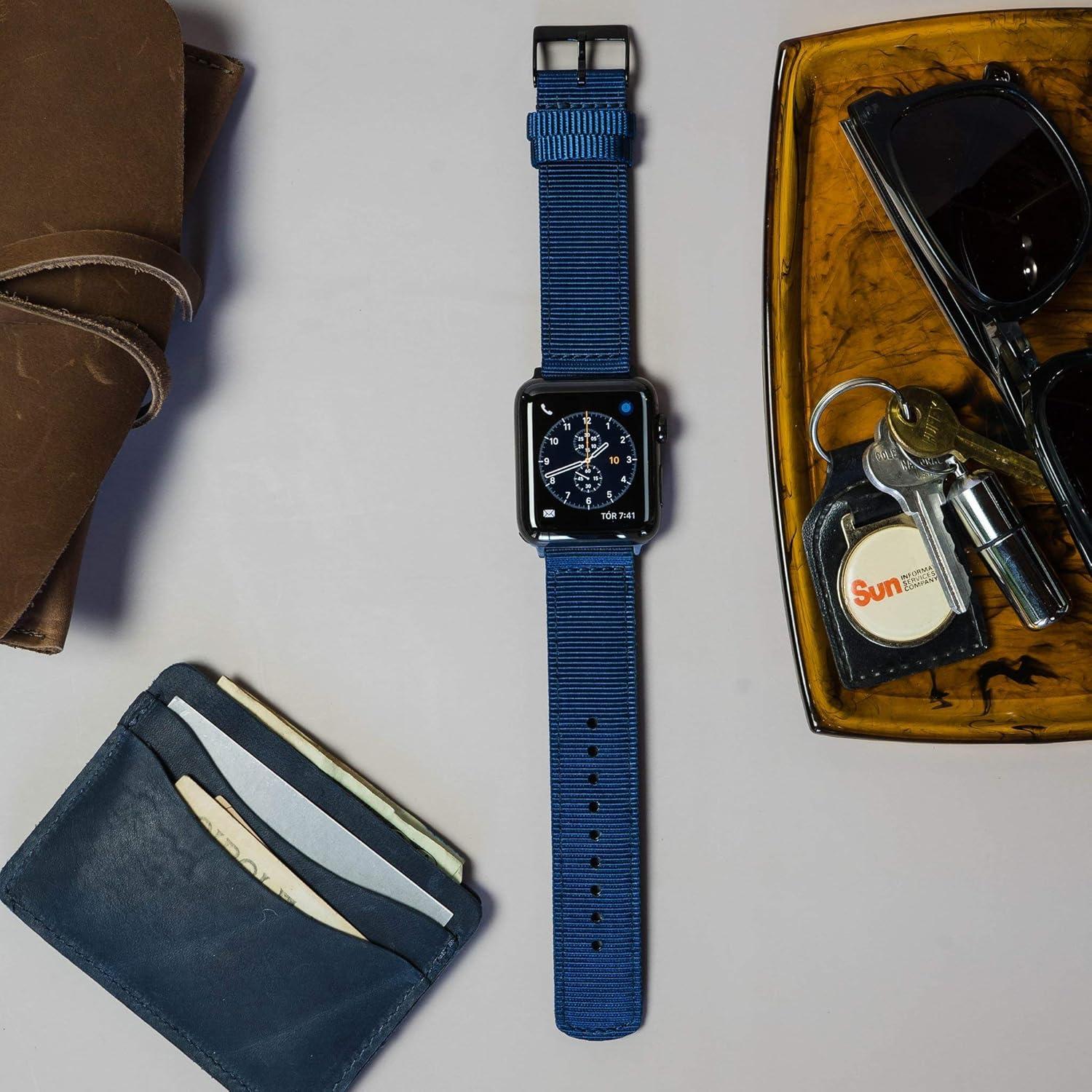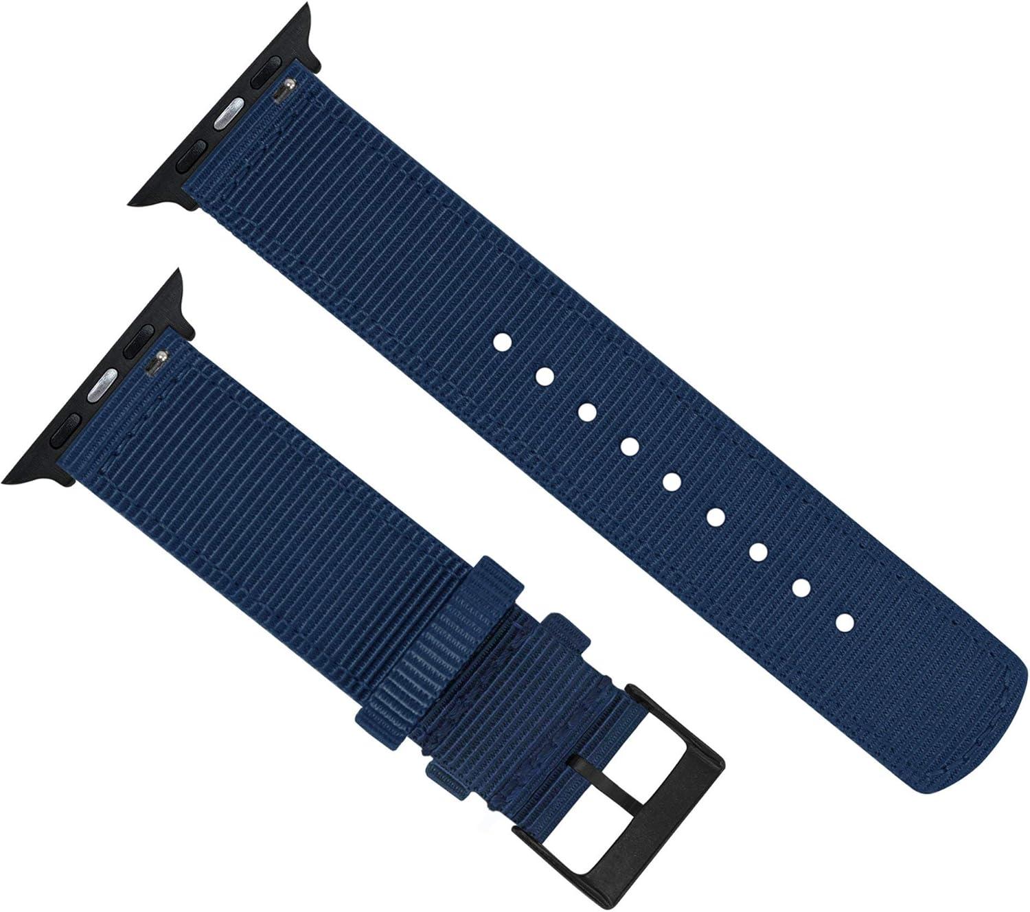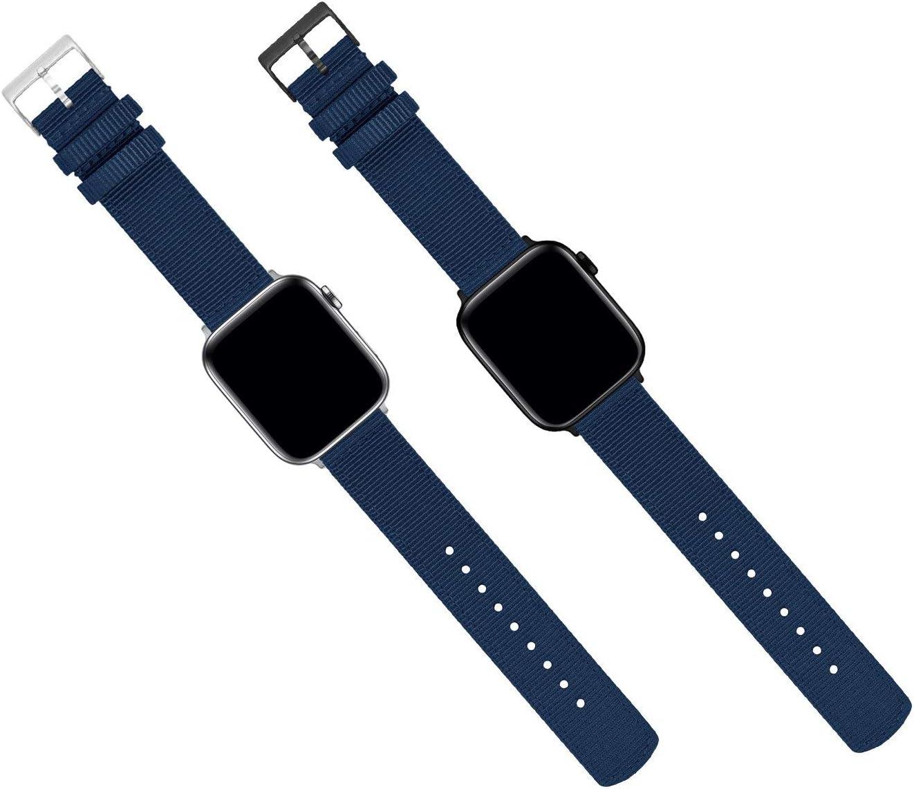 BARTON WATCH BANDS – Military Style Nylon Watch Bands Compatible with Apple Watch Models – 1, 2, 3, 4, 5, 6, 7, 8, 9, 10, SE, Ultra & Ultra 2(Navy Blue (Black Hardware))