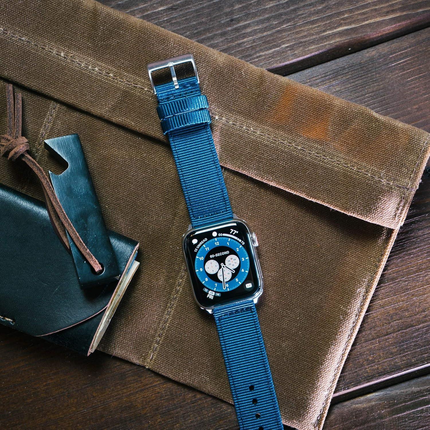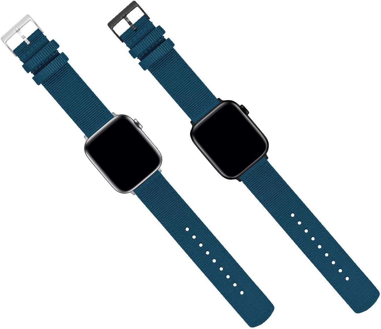 BARTON WATCH BANDS – Military Style Nylon Watch Bands Compatible with Apple Watch Models – 1, 2, 3, 4, 5, 6, 7, 8, 9, 10, SE, Ultra & Ultra 2(Steel Blue (Stainless Hardware))
