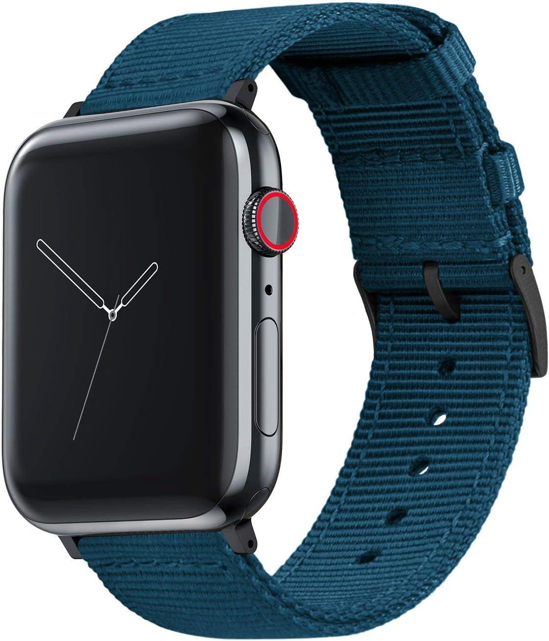 imageBARTON WATCH BANDS  Military Style Nylon Watch Bands Compatible with Apple Watch Models  1 2 3 4 5 6 7 8 9 10 SE Ultra ampamp Ultra 2Steel Blue Black Hardware
