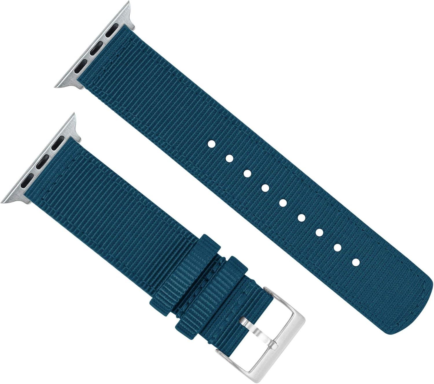 BARTON WATCH BANDS – Military Style Nylon Watch Bands Compatible with Apple Watch Models – 1, 2, 3, 4, 5, 6, 7, 8, 9, 10, SE, Ultra & Ultra 2(Steel Blue (Stainless Hardware))