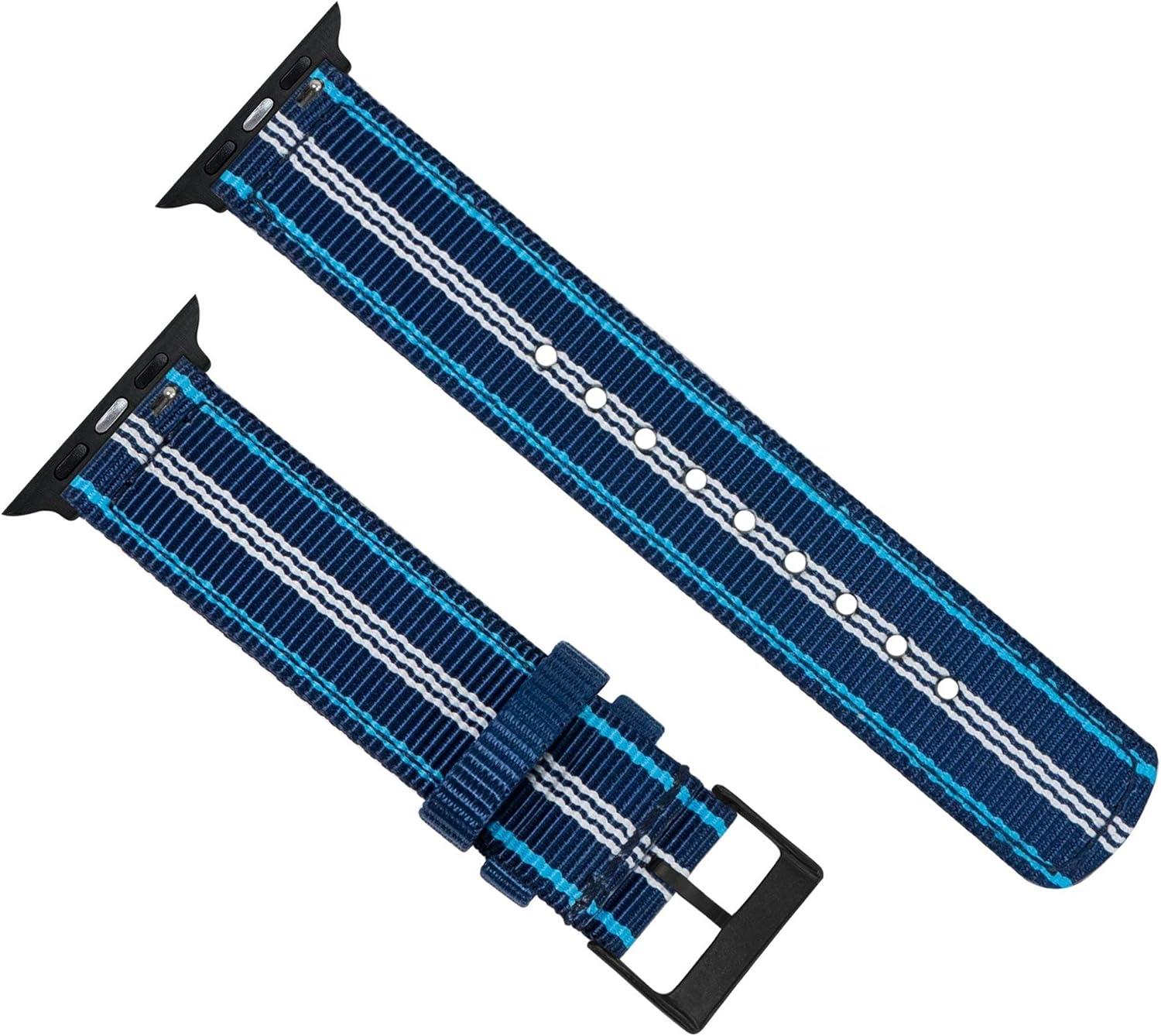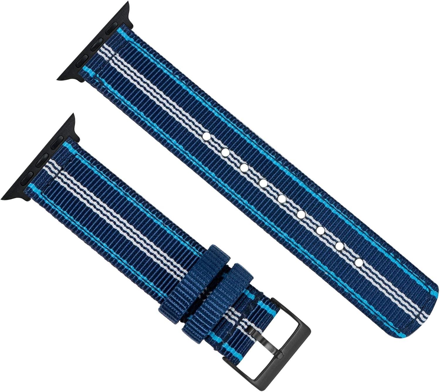 imageBARTON WATCH BANDS  Military Style Nylon Watch Bands Compatible with Apple Watch Models  1 2 3 4 5 6 7 8 9 10 SE Ultra ampamp Ultra 2Twotoned Blue Black Hardware