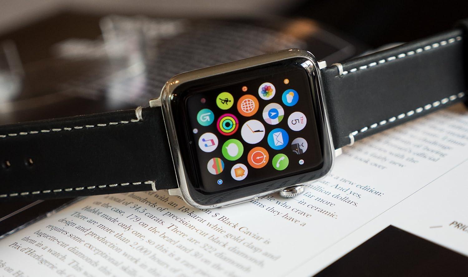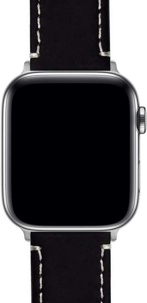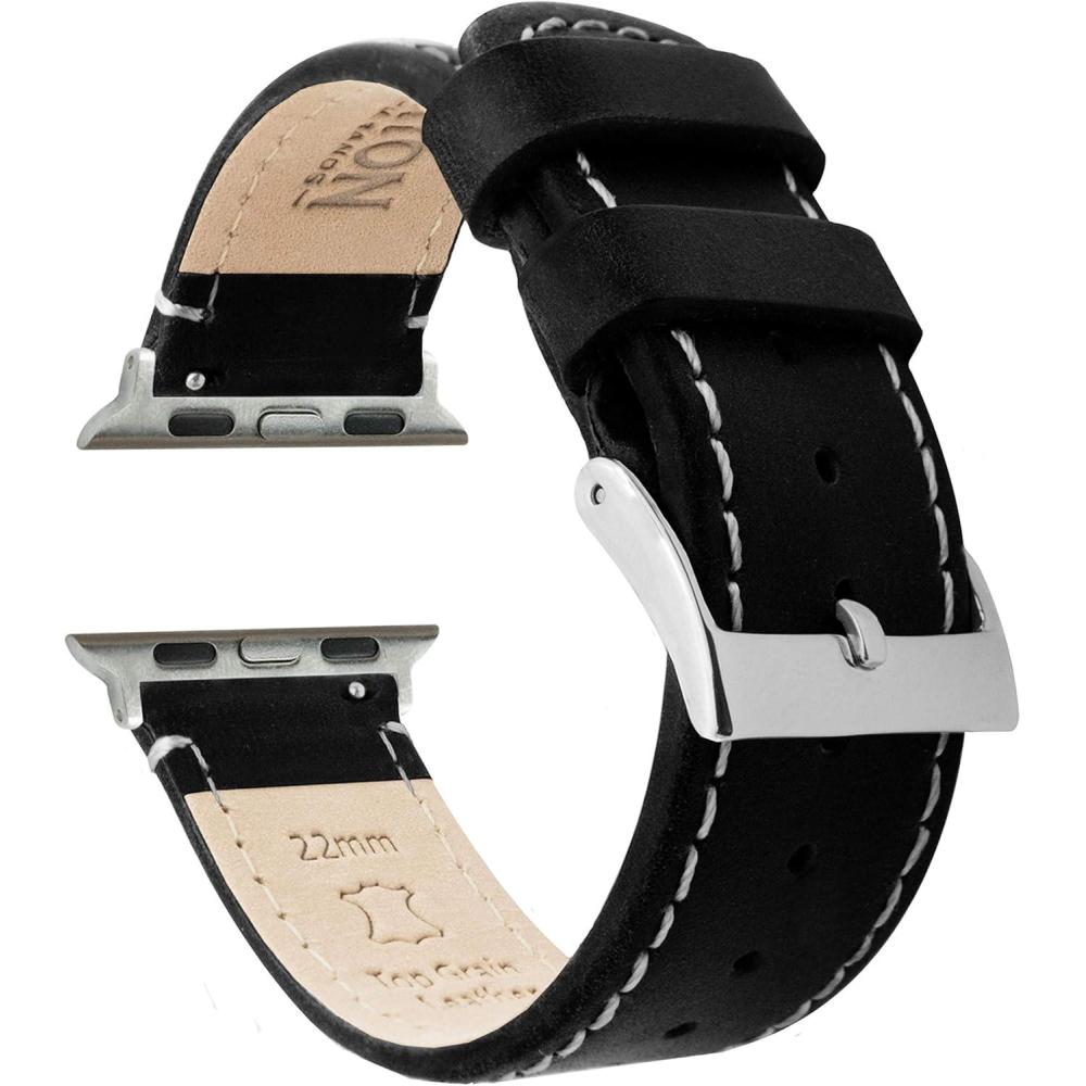 imageBARTON WATCH BANDS  Top Grain Leather Watch Bands Compatible with Apple Watch Models  1 2 3 4 5 6 7 8 9 10 SE Ultra ampamp Ultra 2Black Leather  White Stitching