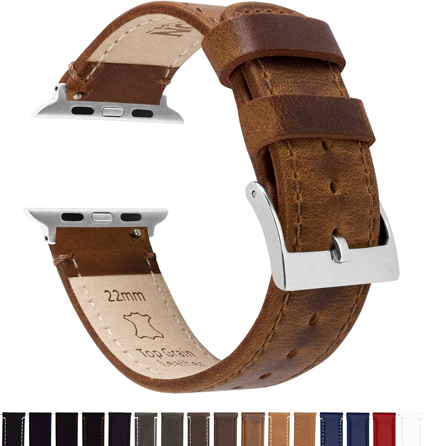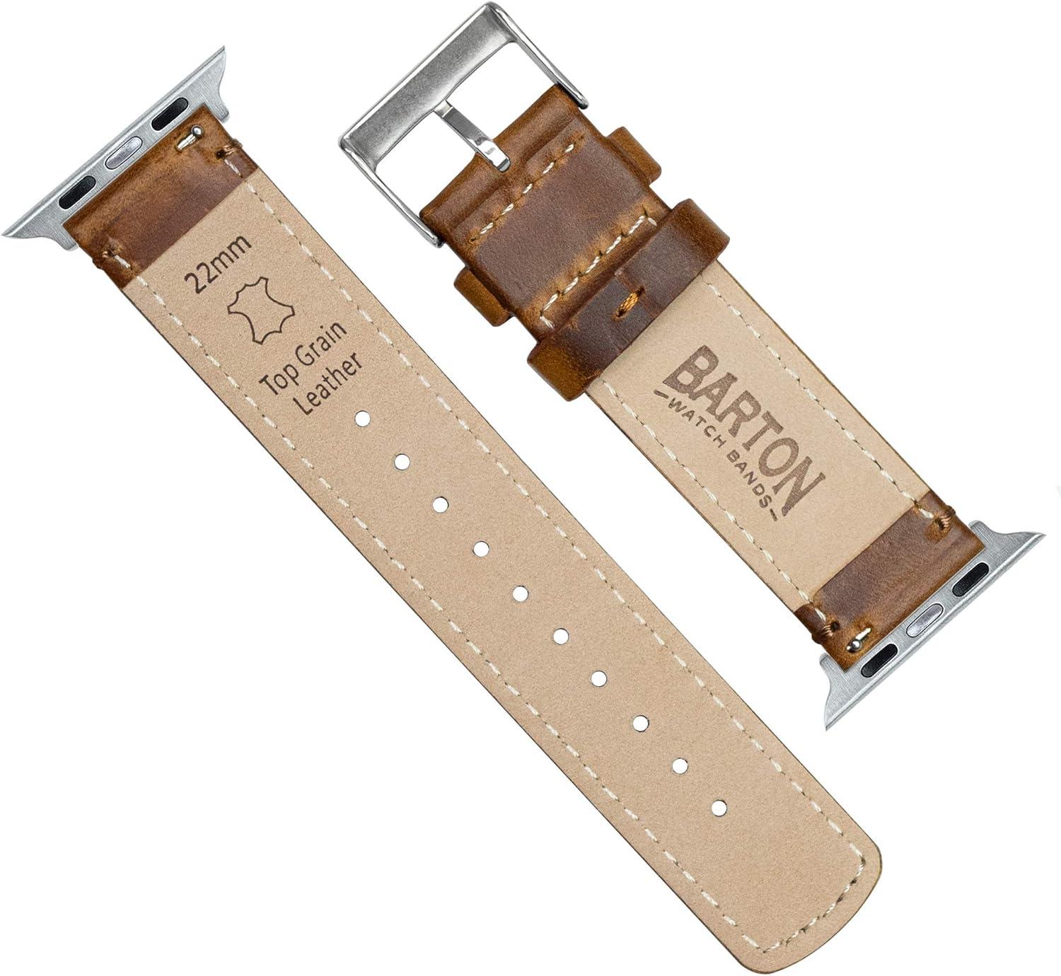 BARTON WATCH BANDS – Top Grain Leather Watch Bands Compatible with Apple Watch Models – 1, 2, 3, 4, 5, 6, 7, 8, 9, 10, SE, Ultra & Ultra 2(Caramel Tan Leather & Stitching)