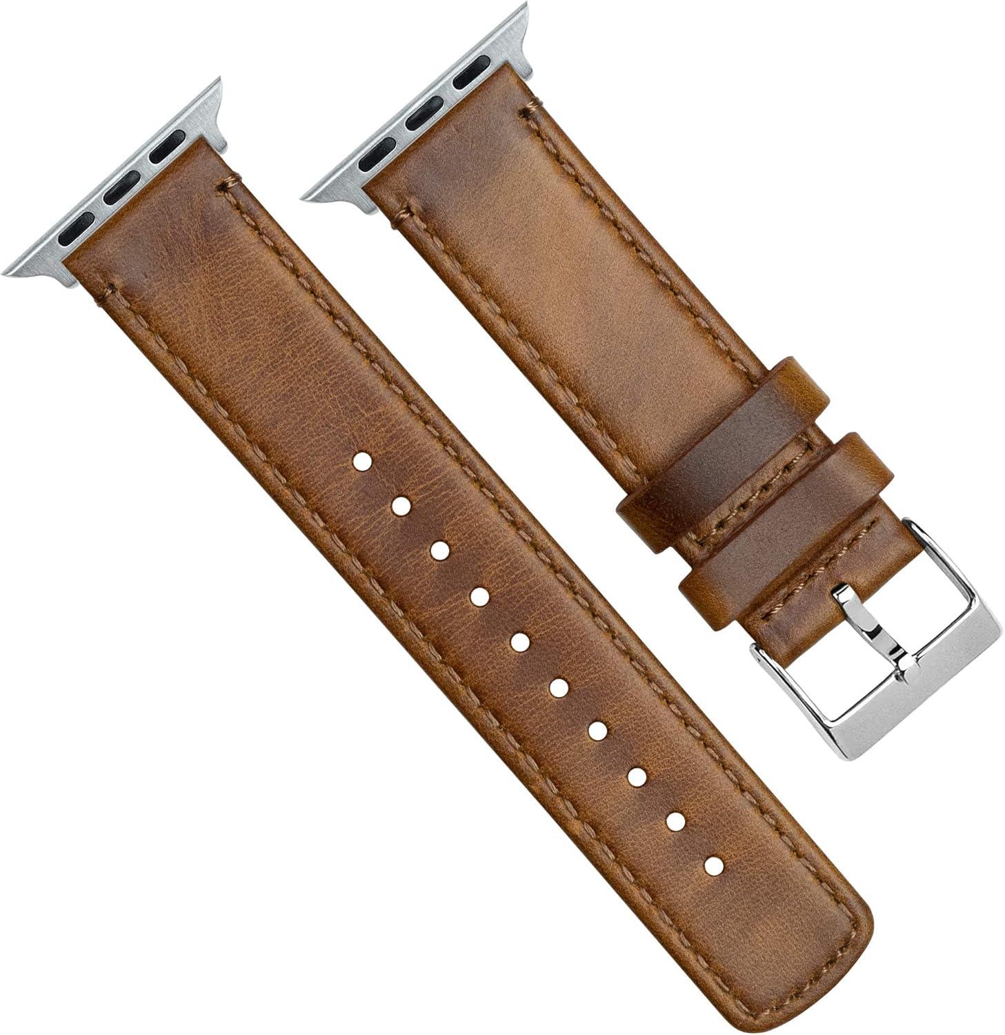 BARTON WATCH BANDS - Top Grain Leather Watch Bands Compatible with Apple Watch Models - 1, 2, 3, 4, 5, 6, 7, 8, 9, 10, SE, Ultra & Ultra 2(Caramel Tan Leather & Stitching)