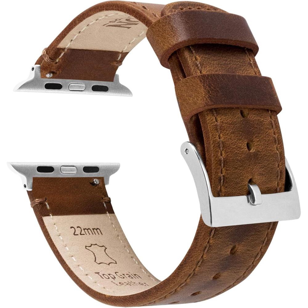 imageBARTON WATCH BANDS  Top Grain Leather Watch Bands Compatible with Apple Watch Models  1 2 3 4 5 6 7 8 9 10 SE Ultra ampamp Ultra 2Caramel Tan Leather  Stitching Black Hardware