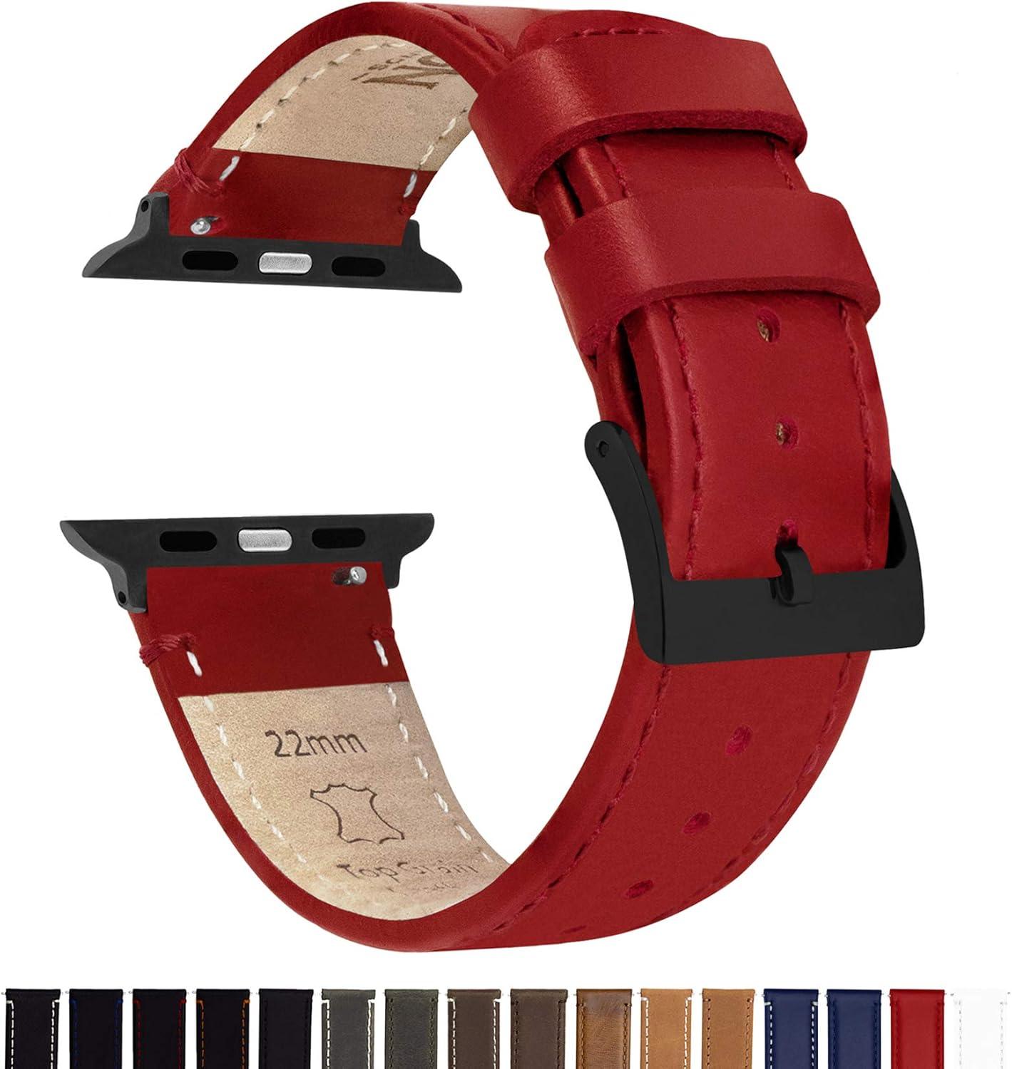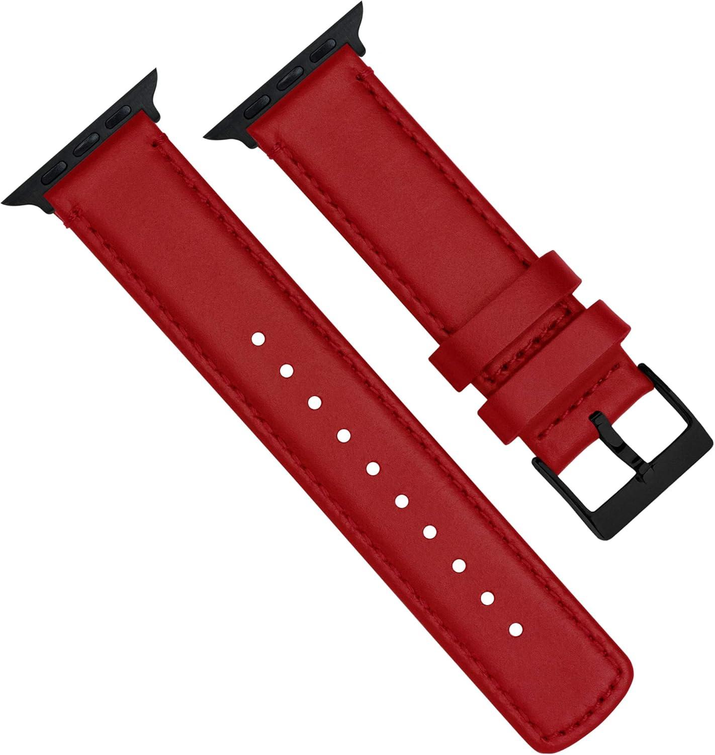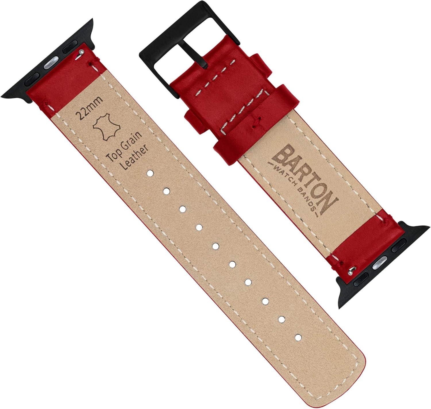 BARTON WATCH BANDS – Top Grain Leather Watch Bands Compatible with Apple Watch Models – 1, 2, 3, 4, 5, 6, 7, 8, 9, 10, SE, Ultra & Ultra 2(Crimson Red)