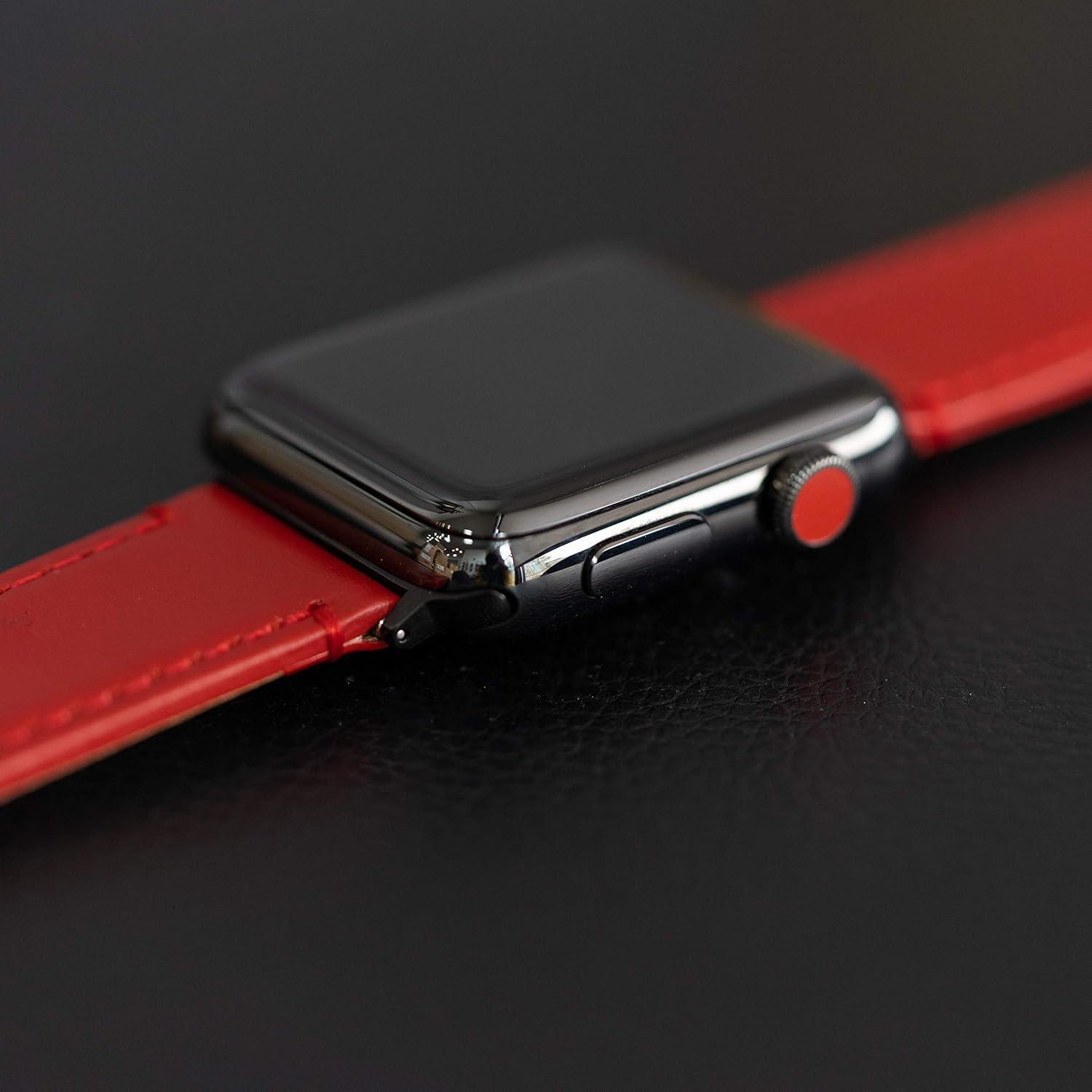 imageBARTON WATCH BANDS  Top Grain Leather Watch Bands Compatible with Apple Watch Models  1 2 3 4 5 6 7 8 9 10 SE Ultra ampamp Ultra 2Crimson Red