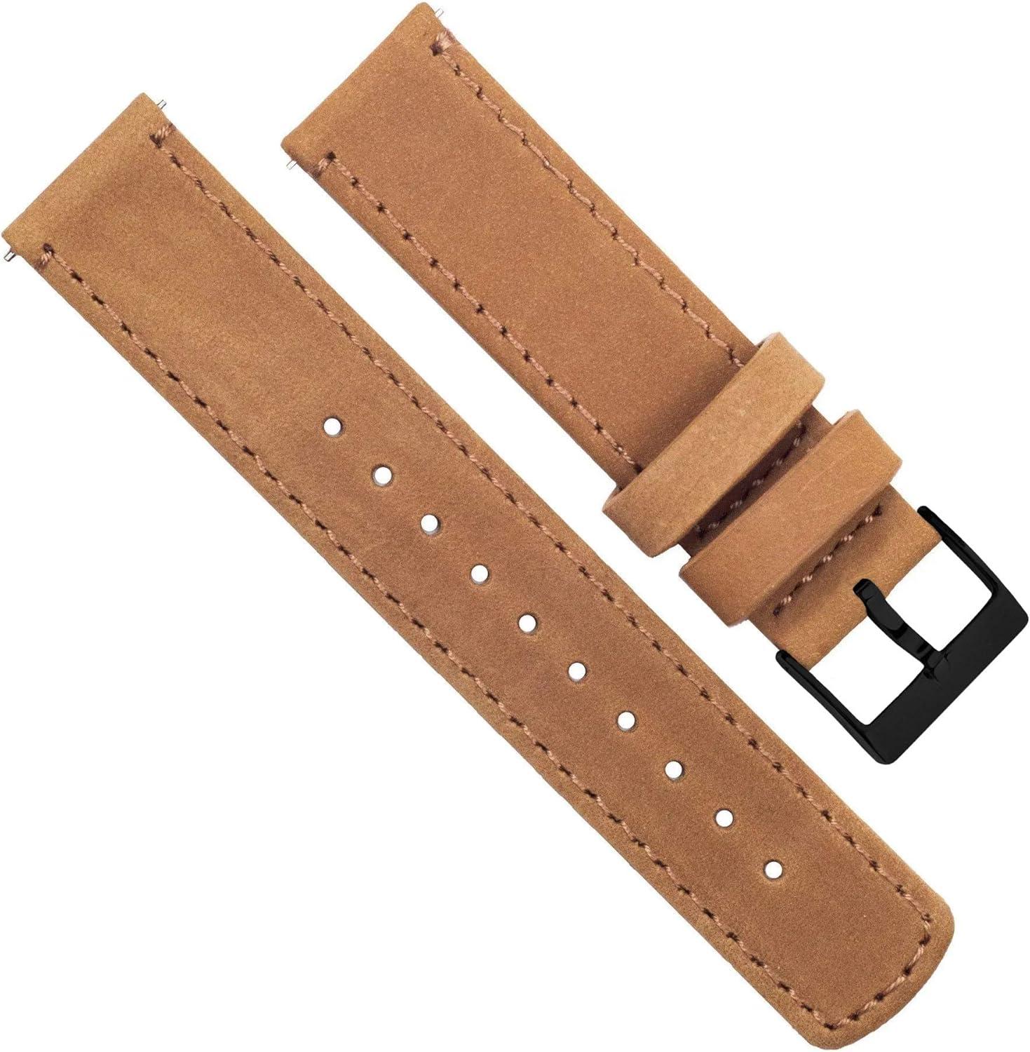 BARTON WATCH BANDS – Top Grain Leather Watch Bands Compatible with Apple Watch Models – 1, 2, 3, 4, 5, 6, 7, 8, 9, 10, SE, Ultra & Ultra 2(Gingerbread Brown Leather / White Stitching (Black Hardware))
