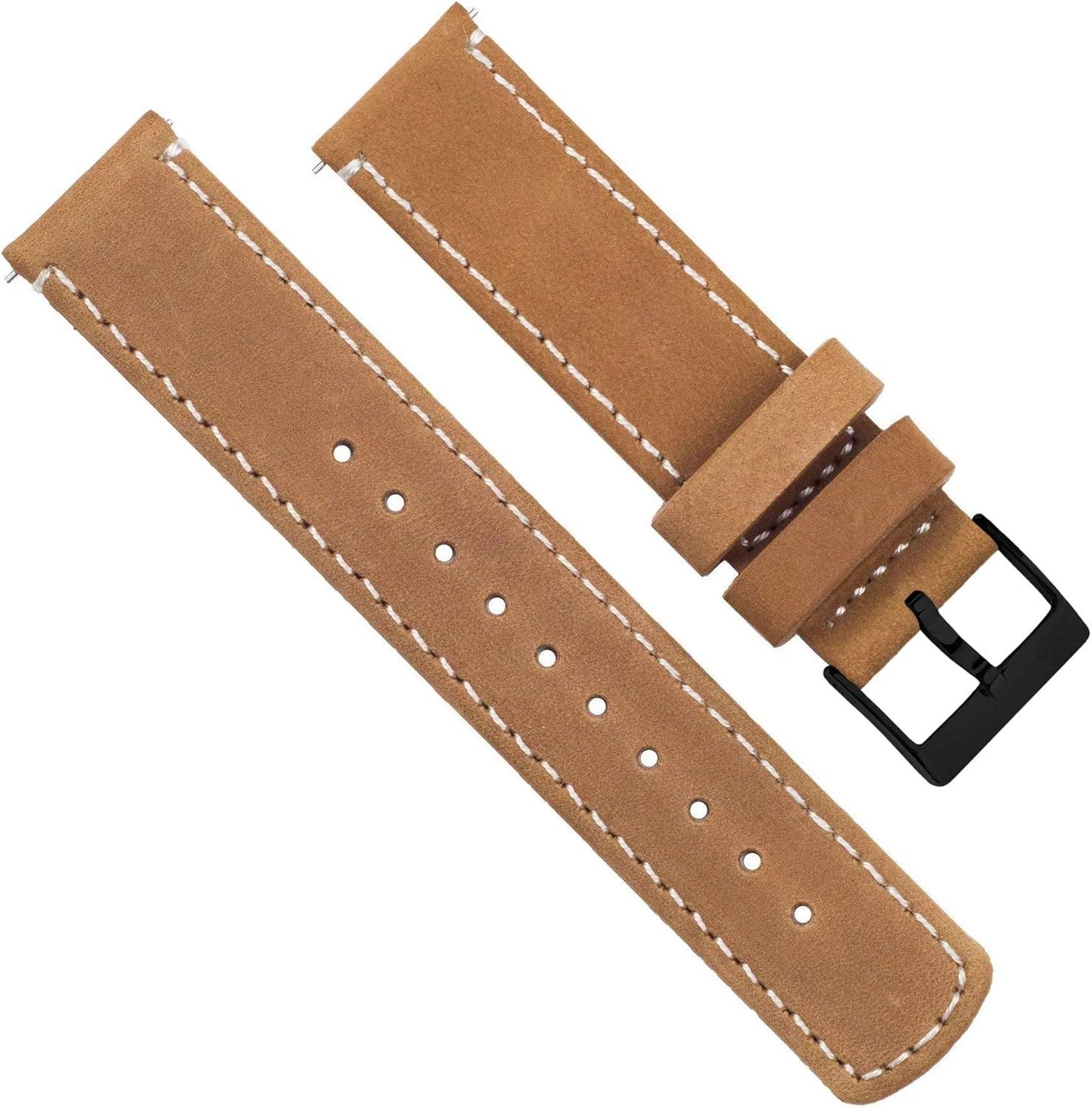 BARTON WATCH BANDS – Top Grain Leather Watch Bands Compatible with Apple Watch Models – 1, 2, 3, 4, 5, 6, 7, 8, 9, 10, SE, Ultra & Ultra 2(Gingerbread Leather / Linen White Stitching)