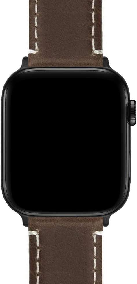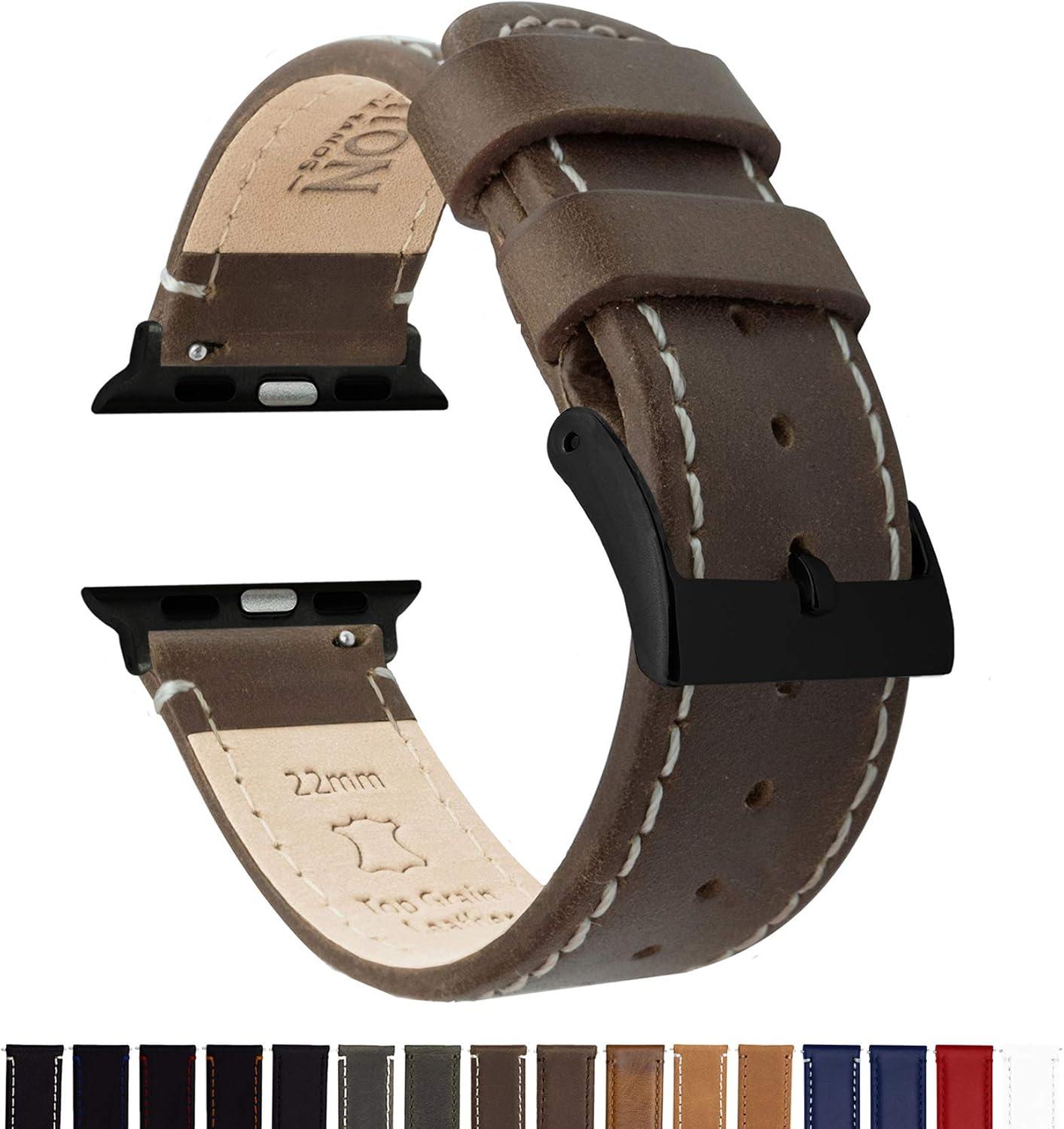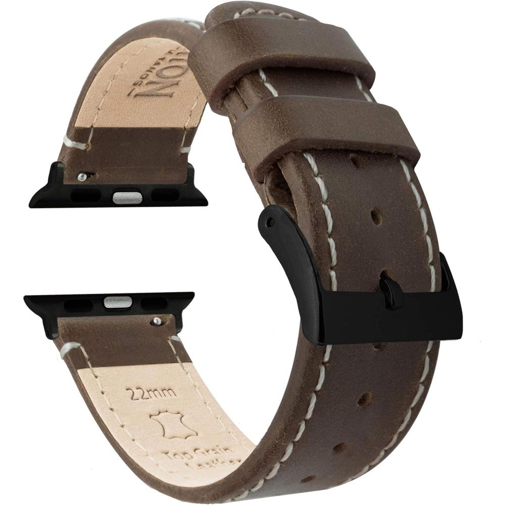 imageBARTON WATCH BANDS  Top Grain Leather Watch Bands Compatible with Apple Watch Models  1 2 3 4 5 6 7 8 9 10 SE Ultra ampamp Ultra 2Saddle Brown Leather  White Stitching Black Hardware