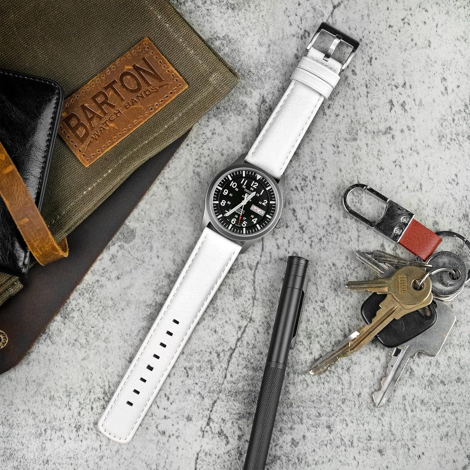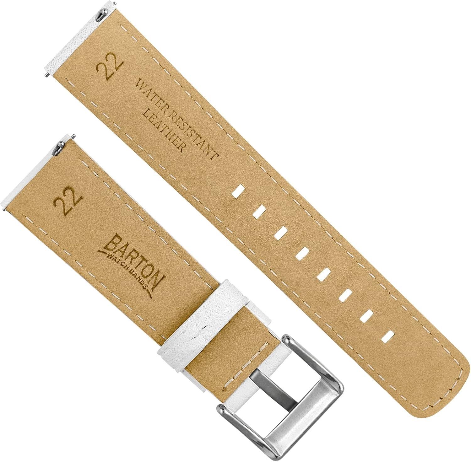 BARTON Water-Resistant Leather Watch Bands – Quick Release – Choose Strap Color & Size – 18mm, 20mm, 22mm & 24mm Watch Straps(White)
